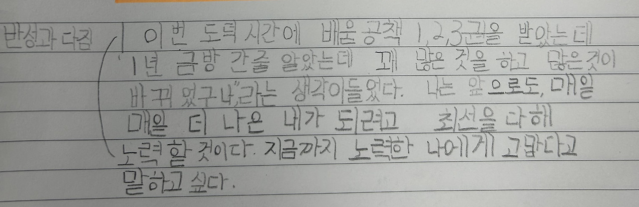 2학기가 시작되자마자 아이들에게 3월, 첫 번째 배움공책을 보여준 적이 있었습니다. 아이들은 자신의 배움공책을 보고 깜짝 놀랐지요. 3월부터 2학기까지 기껏 다섯 달이 흘렀을 뿐인데, 그 안에 확연한 변화를 느꼈나 봅니다. 가장 눈에 띄게 변한 건 글씨체입니다. 글은 그 사람의 마음을 나타낸다고 항상 일러두었는데, 올해 아이들이 유독 제 말을 잘 따라와 주었습니다. 첫 번째 배움공책과 현재의 글을 보면 글씨체뿐만이 아니라, 글의 내용에서도 그 깊이감이 확연히 차이를 보이고 있습니다.