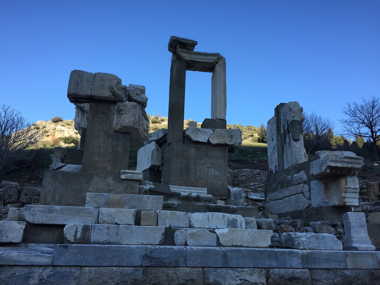 다시 쿠레테스 거리를 따라 다시 내려오면 에페소스의 상징 켈수스 도서관이 정면으로 보인다. 지금은 정면만 남아 있지만 매우 섬세한 건축물이다. 기둥 간격이 넓지 않아서 웅장하기보다는 예쁘게 보인다. 그리고 섬세한 조각으로 장식을 해서 더욱더 아름답게 보인다. 켈수스 도서관 옆에는 아고라가 있는데 아고라고 가기 위해서는 조금 웅장해 보이는 두 개의 문, 자메우수와 미트리다테스 문을 넘어가야 한다. 이 문은 노예였던 마제우스와 미트리다테스가 노예에서 해방되면서 감사의 의미로 황제에게 바친 문이란다.