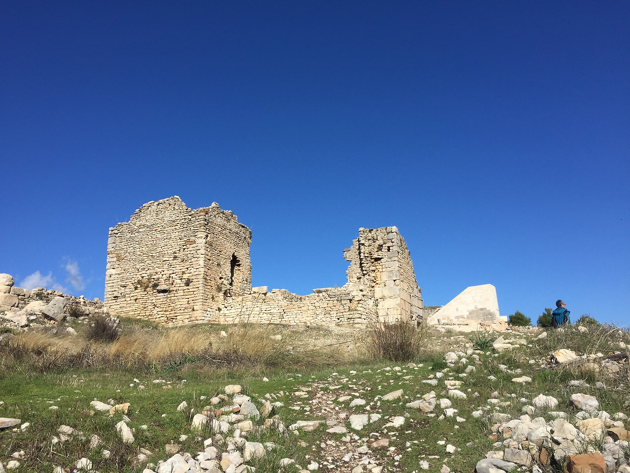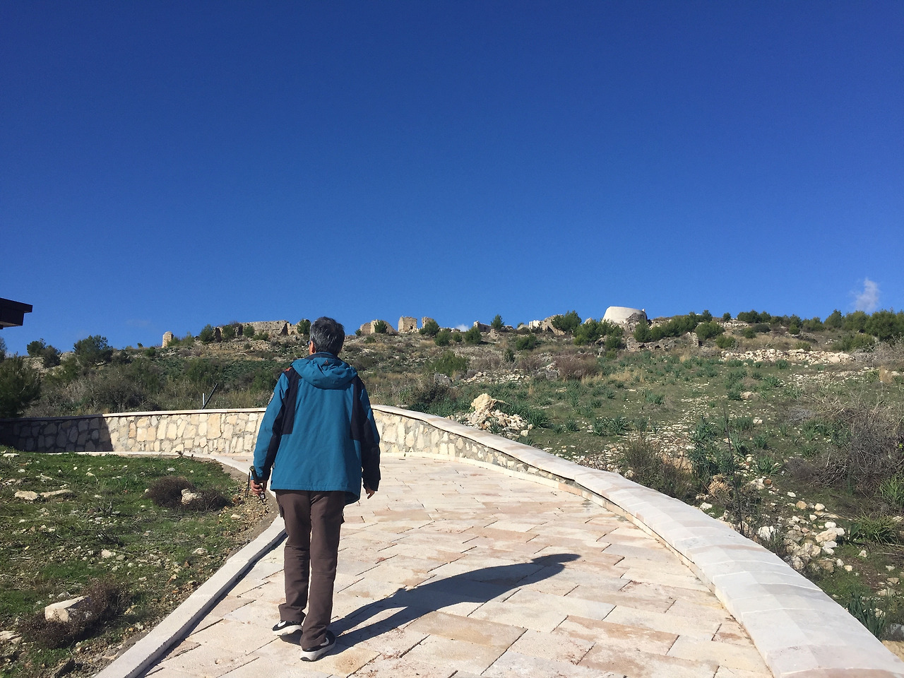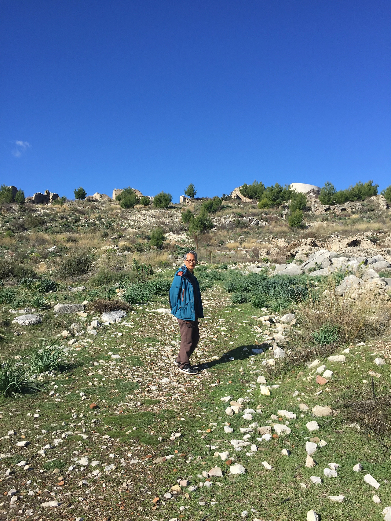 여기 저기에 나뒹귀는 작은 돌 모두가 유적지의 파편들이다. 이 돌들을 최대한 피하면서 오솔길을 따라 언덕 위로 올라가 본다. 밑에서 조그만하게 보이던 고대 도시 유적지가 상당한 규모의 모습으로 나타난다.