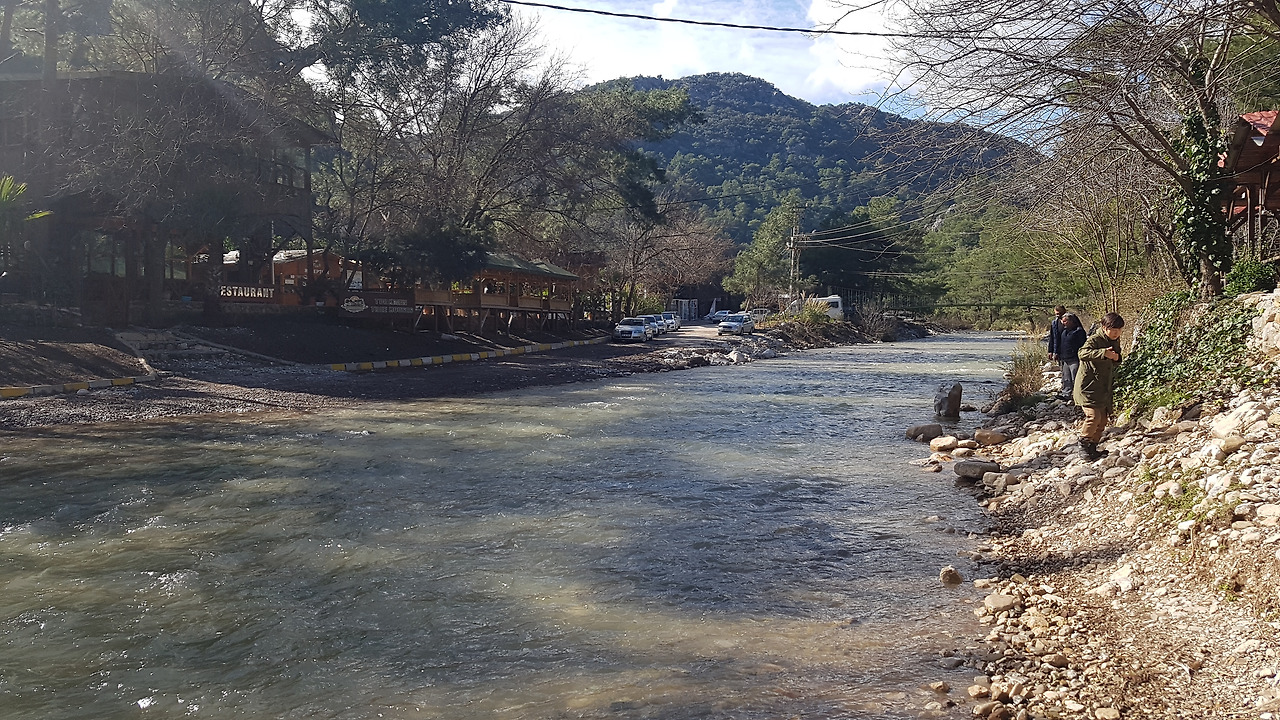 강을 건너니 더 많은 식당과 숙소들이 있고 그 끝에 고대도시 올림포스에 들어가는 매표소가 보인다. 입장료도 자그마치 1인당 20리라. 아니 돈도 받으면서 다리하나 만들어 놓지 않는지 모르겠다.