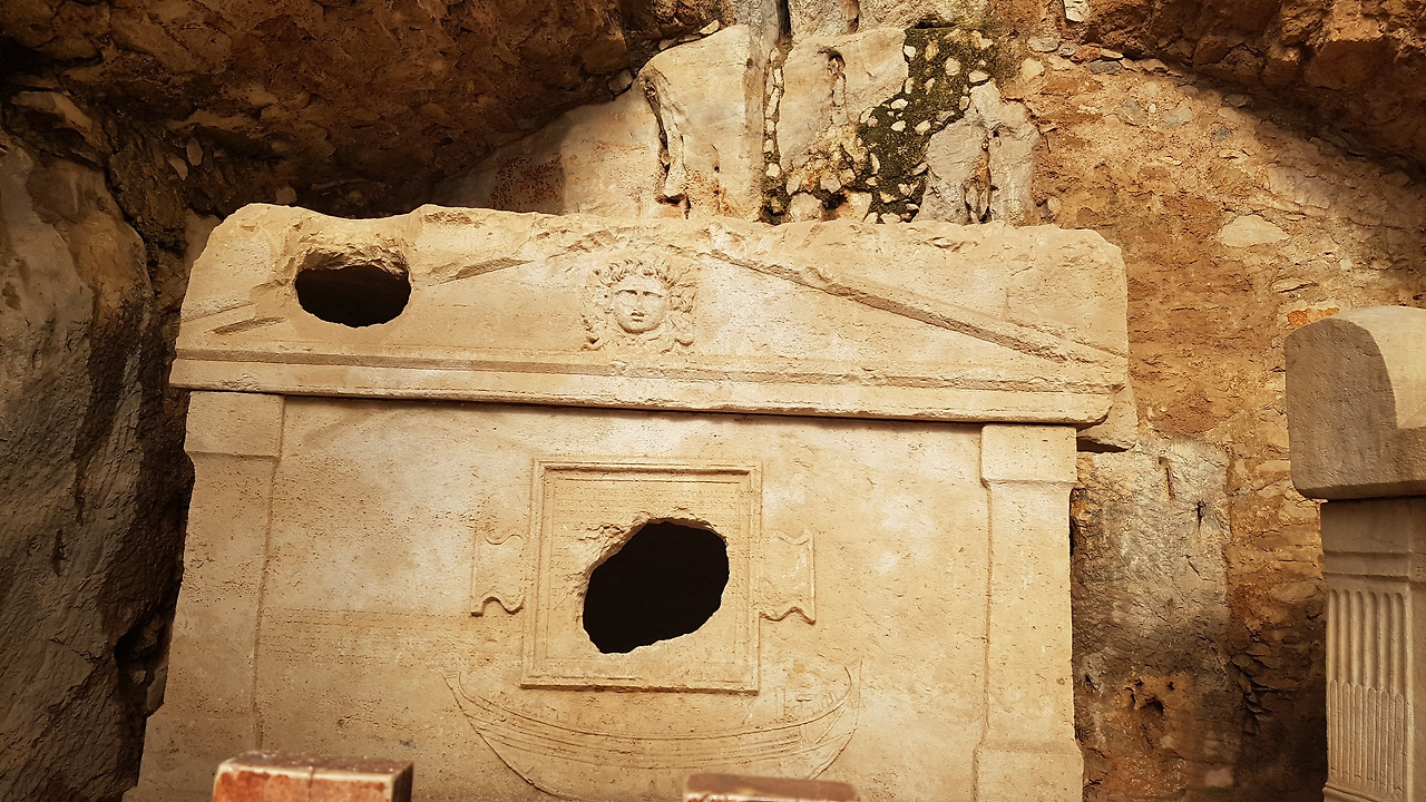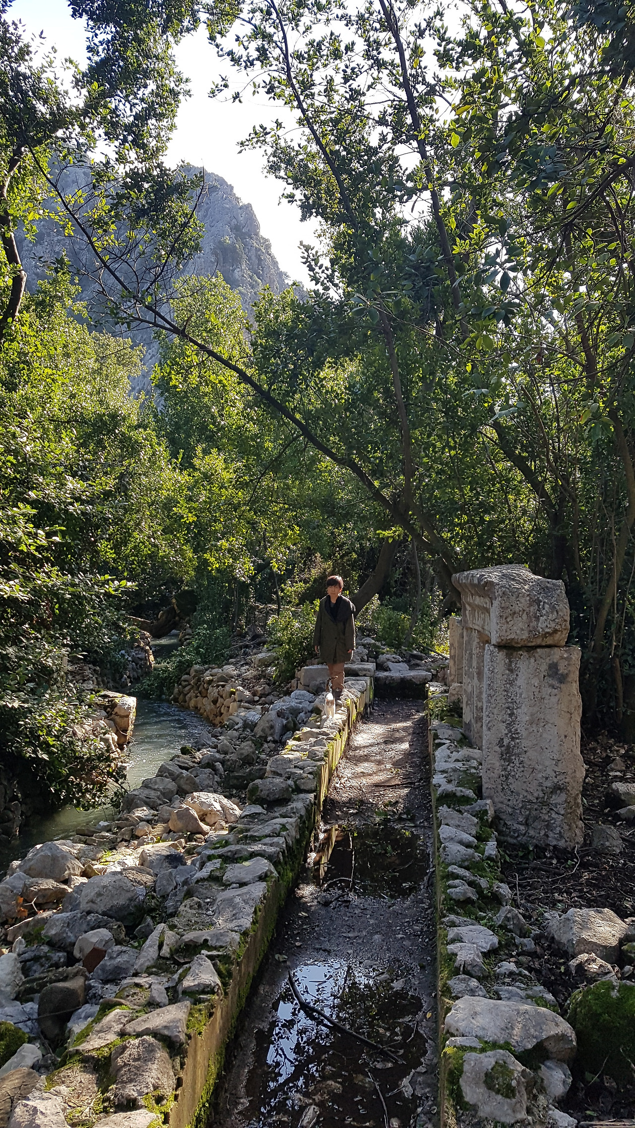 유적지 끝에서는 강물이 바다와 만나는다. 그 입구에 강 양쪽의 도시를 연결했던 다리 흔적이 남아있다. 아마 아치형 다리 일부일 것이다. 일부이긴 하지만 다리 기둥이 강물속에서 2천년 이상 남아 있는것이 신기할 뿐이다. 바다 쪽으로 더 나가면 도시 입구에 해당하는 지점에 석관묘 두개가 자리를 지키고 있다. 이 묘의 주인이 누구인지는 모르겠지만 아마 도시를 상징하는 사람의 무덤이었으리라 짐작만 해본다.