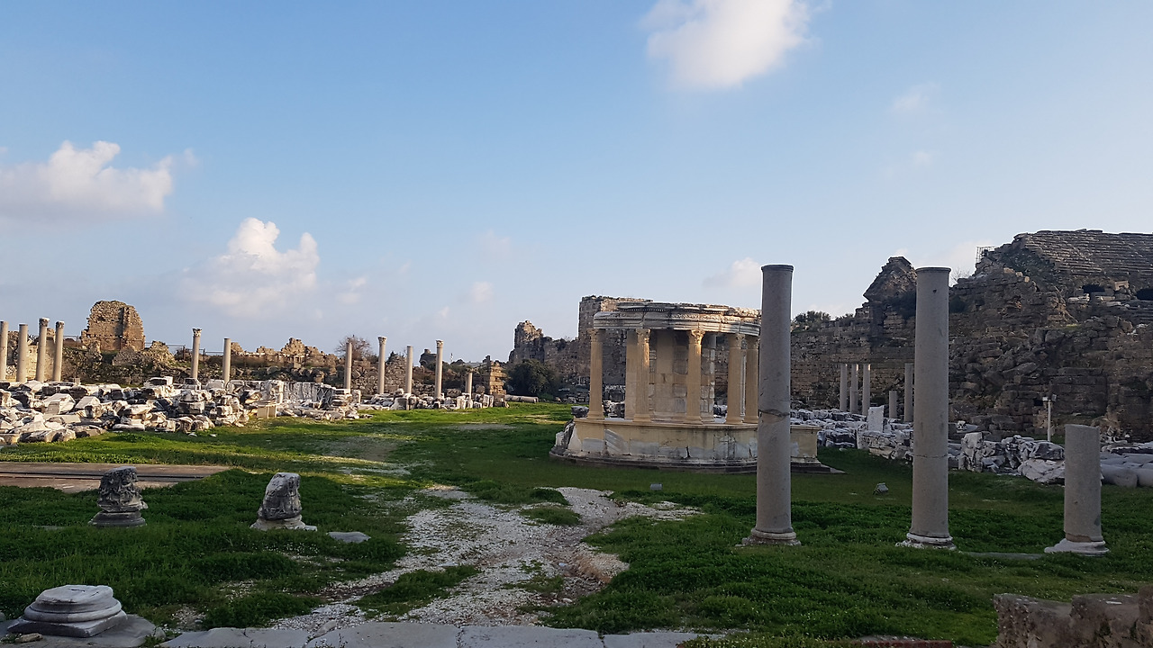 시데는 주로 2세기 유적지이므로 오전에 다녀왔던 Aspendos와 거의 같은 시대의 도시이다. 시데를 대표하는 유적은 고대 항구 앞에 우뚝 솟아 있는 아폴론 신전이다. 몇 개의 기둥만이 복원되어 자리를 지키고 있지만 그 모습만으로도 매우 세련되고 웅장한 신전의 모습을 상상하기에 충분하다. 그리고 그 옆에 도시의 수호자였고 해양무역 시대의 지배자였던 아데나 신전이 있다. 겨울에 문을 닫았던 항구의 봄이 오면 축제를 열고 다시 무역을 시작했다고 한다. 이때 이 신전에 시데 사람들이 모두 모여서 바다에서 사고가 일어나지 않기를 기원했을 것이다.