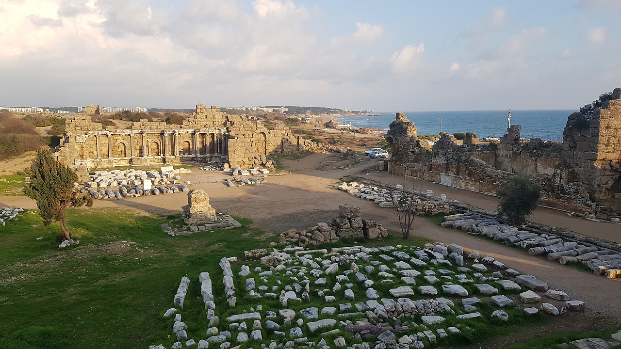 터키 안탈리아 지역의 주요 방문 목적지 중 하나인 Side는 고대 해안가 도시의 흔적이 지역주민 삶과 함께 살아 쉼 쉬고 있는 아주 이색적인 곳으로 과거 Pamphylia 지역에서 가장 중요한 도시였다. Aspendos에서 동쪽으로 30km 정도 떨어진 곳이다.