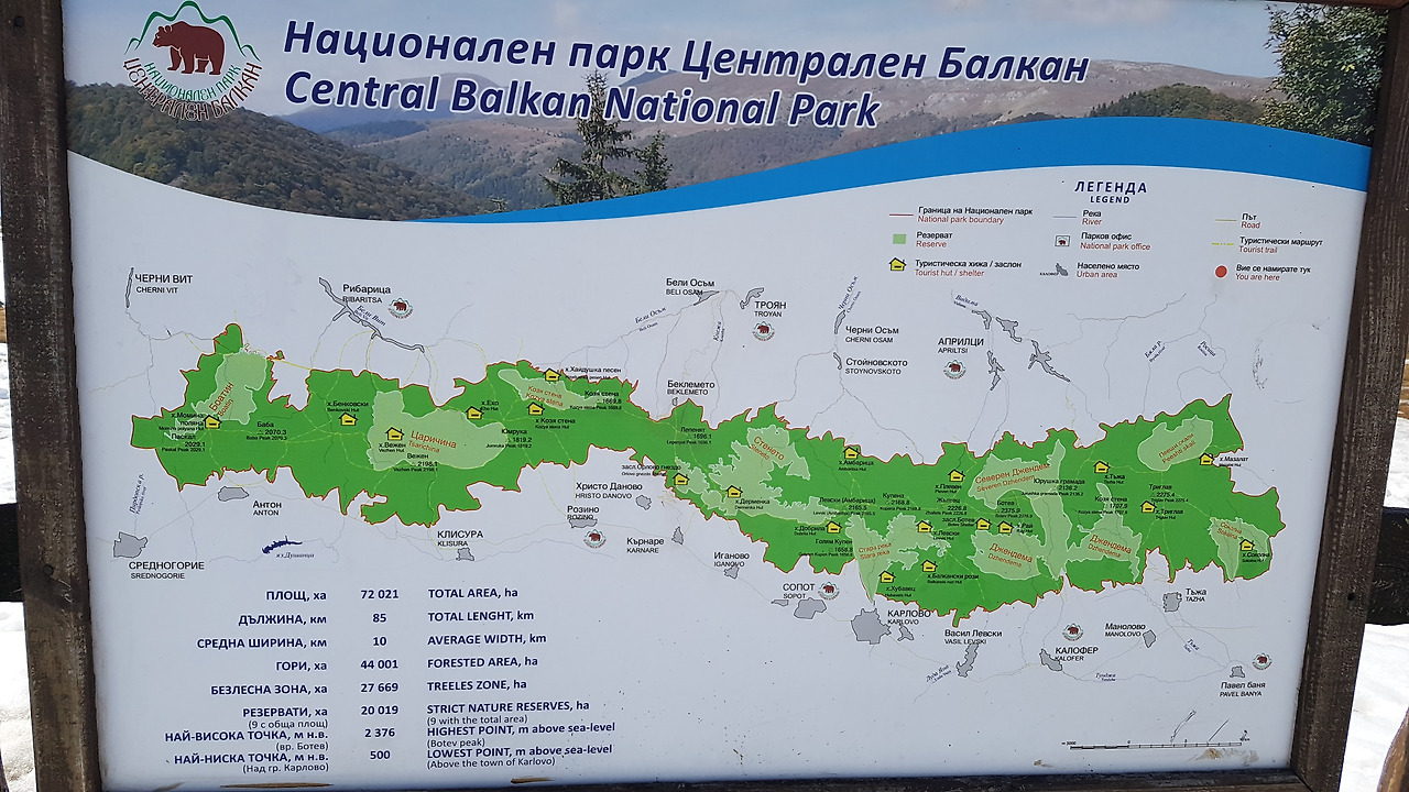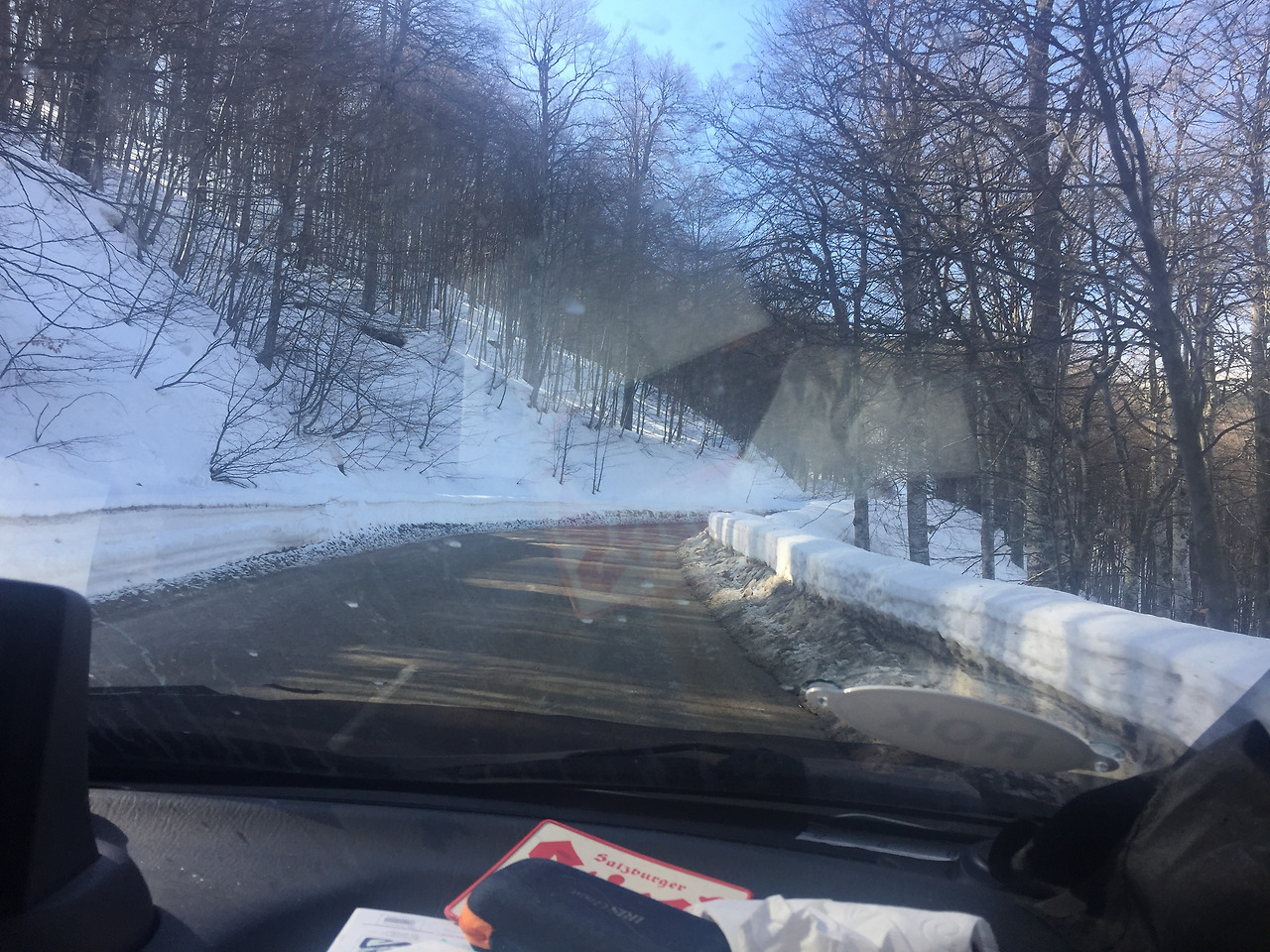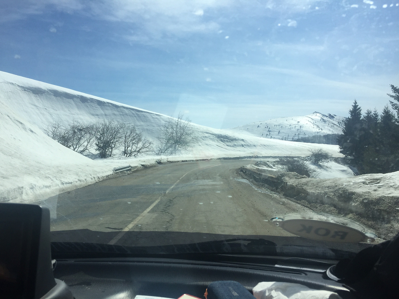 Koprivshtitsa로 가기 위해서는 불가리아 가운데를 동에서 서로 가로지르고 있는 산맥 중간에 있는 Central Balkan 국립공원 지역을 넘어가야 한다. 산으로 산으로 올라가고 있는데 어느 순간에 눈이 녹지 않은 도로가 나온다. 주변에는 아직도 운영 중인 스키장도 있다. 이 산맥에서 가장 높은 산의 높이가 2376m라고 한다. 한라산의 백록담보다 높으니 꽤 높은 산임을 알 수 있다.