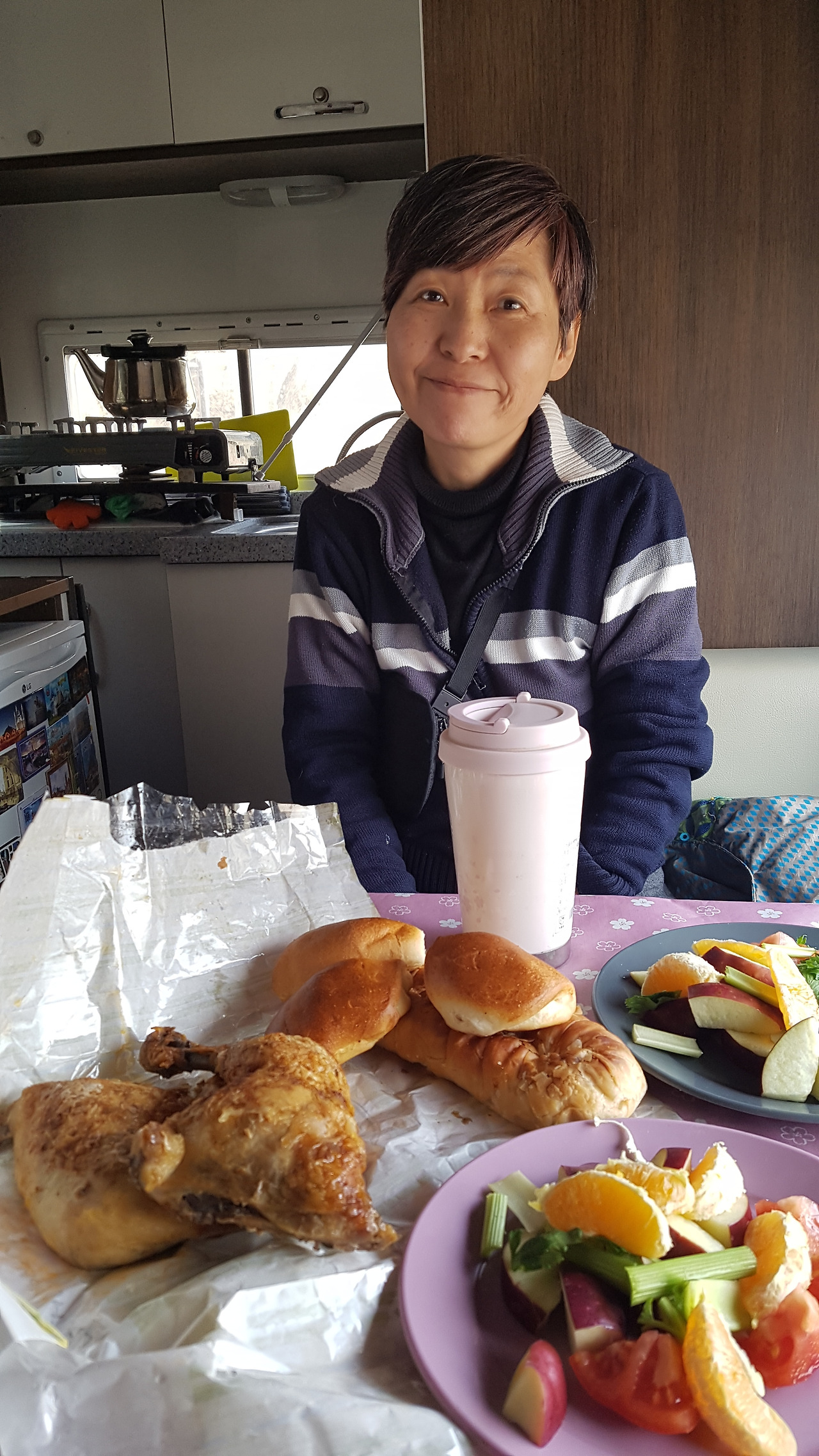 그런데 또 다시 산길을 올라가기 시작한다. 어제부터 산 길을 다니다 보니 길가에 정말로 약수터가 많이 보인다. 약수터 한 곳에서 점심을 한다. 아침에 사 온 따뜻하고 큼직한 닭다리와 빵과 과일로 화려한 점심 상을 차렸다. 그리고 차 안에 깨끗한 물로 청수 통을 가득 채운다. 이제 또다시 며칠 동안 물 걱정 없이 다닐 수 있다.
