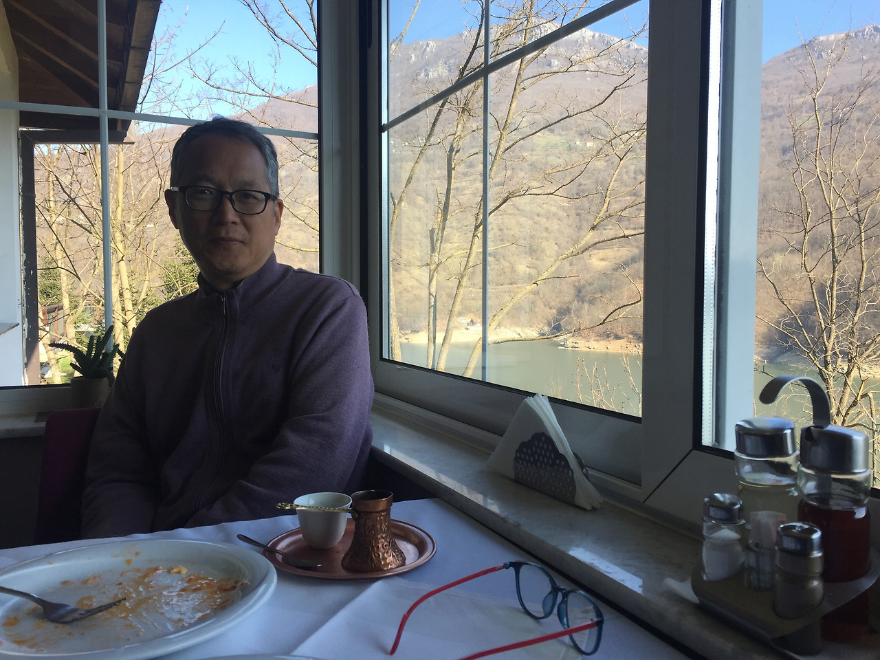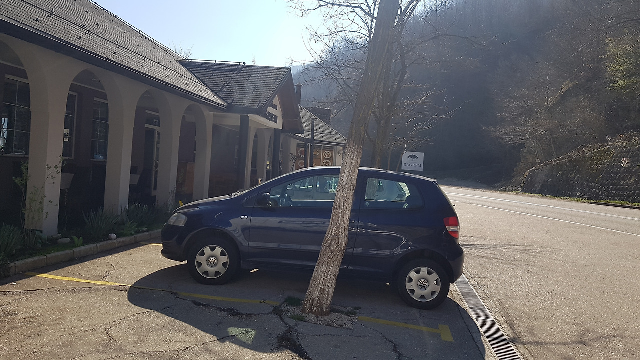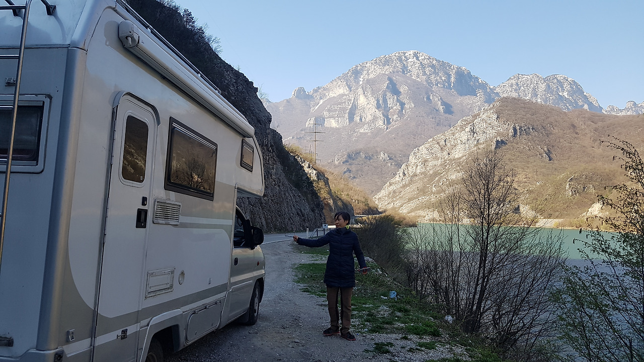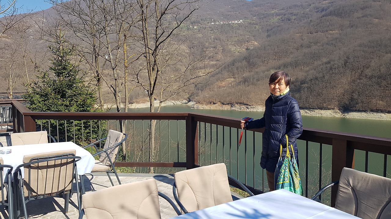 Konjic를 지나 Jablanica 호수를 끼고 달린다. 이 호수는 댐 건설로 만들어진 인공 호수이다. 작은 터널 입구에 아침 식사를 할 만한 주차장이 상대적으로 넓은 식당이 나타난다. 아침도 먹고 쉬어갈 겸 그리고 호수를 바라다보는 여유를 즐겨보기로 한다.