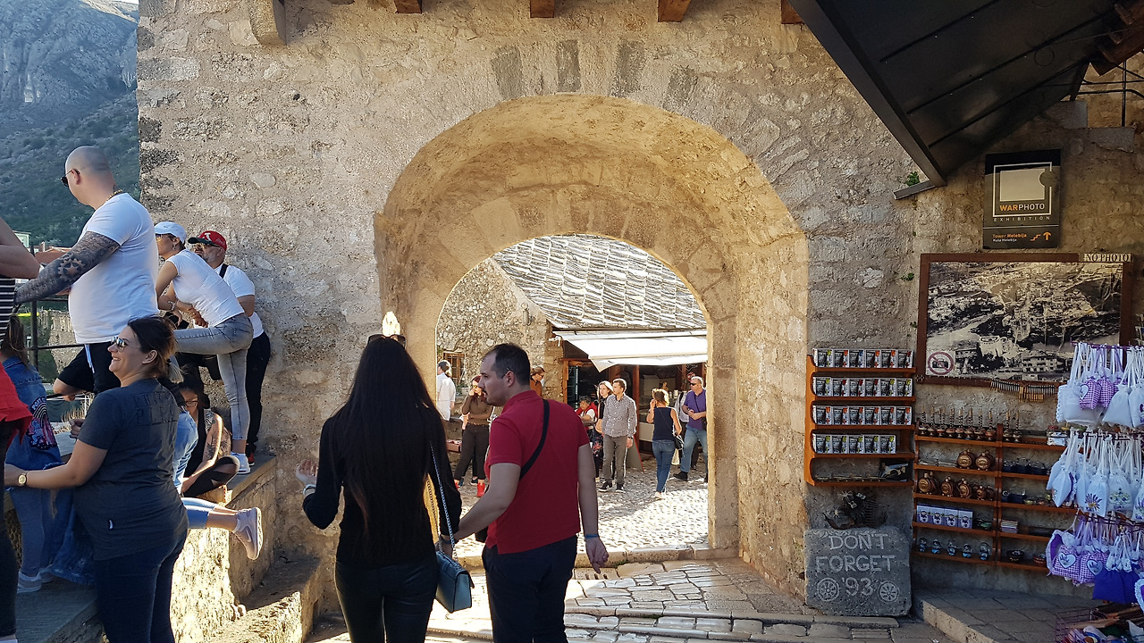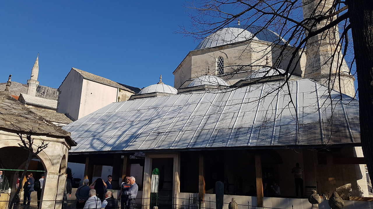 간단하게 점심을 하고 나서 잠이 들었다. 잠깐의 휴식을 취한 후, 모스타르의 명물 스타리모스트 다리를 보러 출발. 우리 숙소가 있는 곳은 이슬람 구역이다. 가는 길에 Koski Mehmed Pasha 모스크를 방문. 모스크가 있다는 점과 이 구역의 마트에서는 돼지고기를 팔지 않는다는 점 등에서 아직도 이슬람 문화가 이 구역의 중심 문화임을 확인할 수 있다.