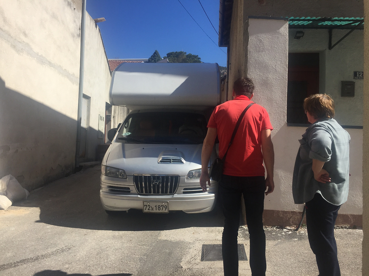 먼저 모스타르 입구에 있는 마트에서 며칠 동안 먹을 식량을 보충하고 나서 숙소로 예약한 곳을 찾아간다. 생각보다 숙소가 좁은 골목 안에 있다. 아톰이 들어갈 수는 있는데 문제는 숙소의 마당으로 들어가는 입구에서 회전하기 어렵다는 것이다. 영어가 되는 주인 아들까지 동원되었지만 포기. 숙소 앞에 있는 작은 학교의 주차장에 주차하기로 결정. 아톰 길이가 6미터 정도가 되어서 요령껏 주차를 하면 가능한 상황. 정말로 다행이다.