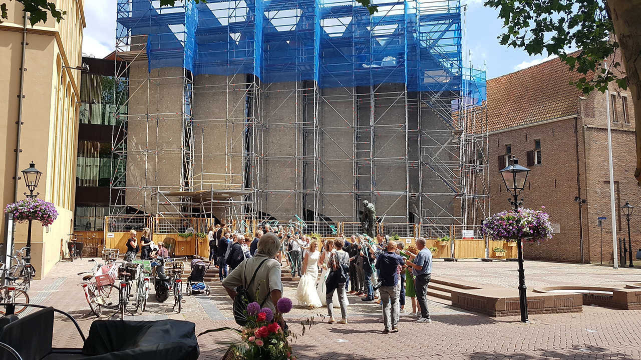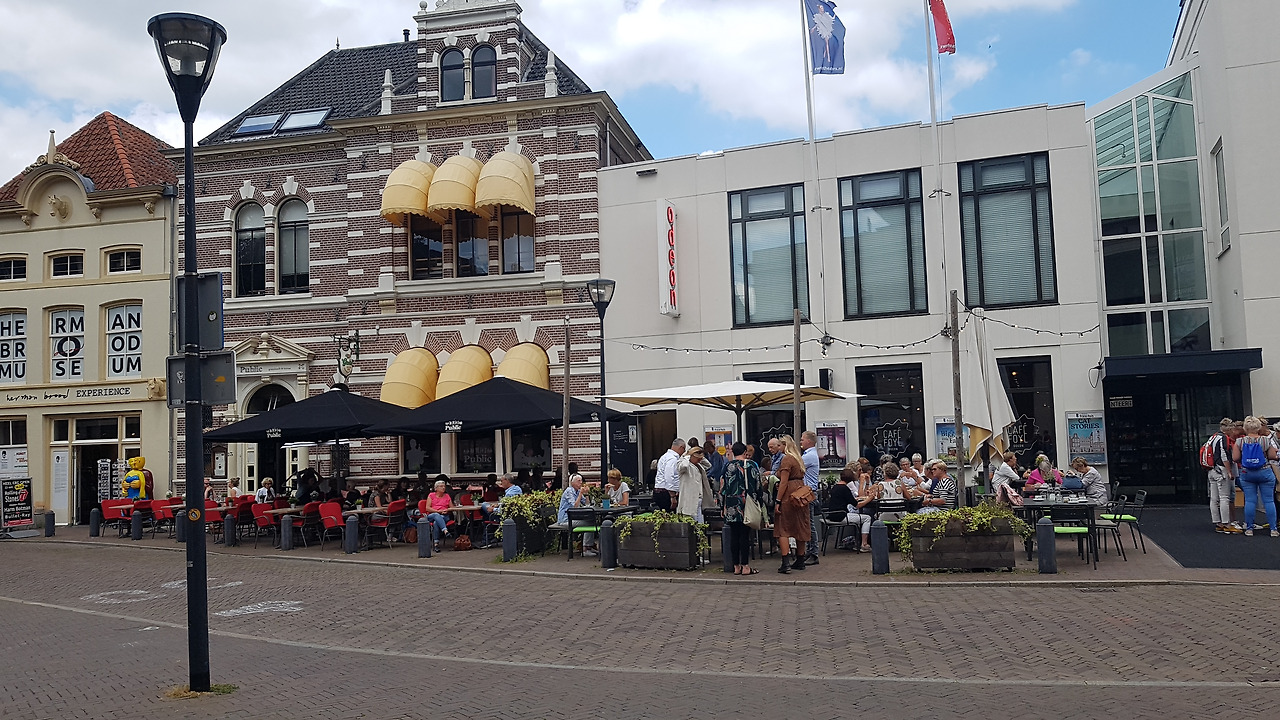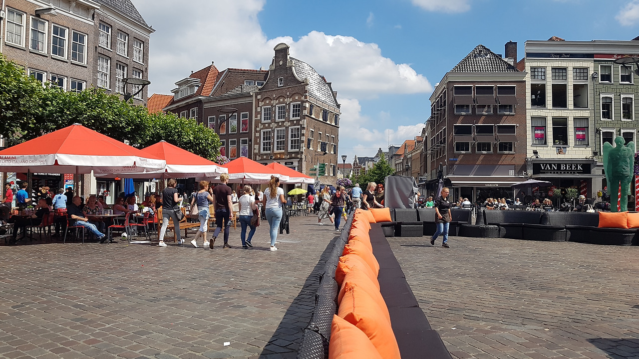 구도심 한가운데에 있는 광장의 시장 Grote Markt에는 저녁에 운영될 노천카페가 설치되고 있다. 낮에는 사람들의 이동과 회합의 장소인 곳에 저녁에는 많은 사람들이 모여 맥주 한잔으로 서로 교류하고 즐거운 시간을 보내는 곳으로 변하는 곳이다.