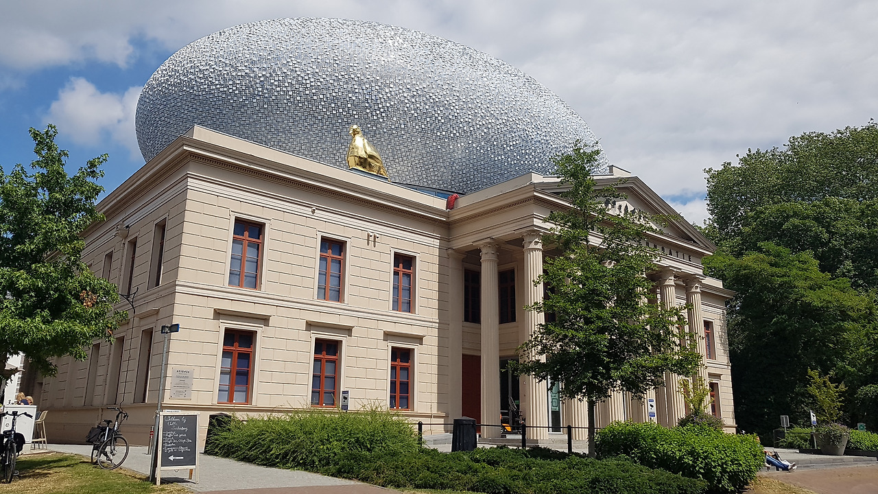 그런데 저 먼 곳에 하늘에 떠 있는 듯한 원형 건물이 보인다. 찾아가 보니 현대미술관이란다. 이 건물은 19세기에 지어졌는데 그 건물 위에 원형 건물을 올려서 매우 독특한 모양이 되었다.
