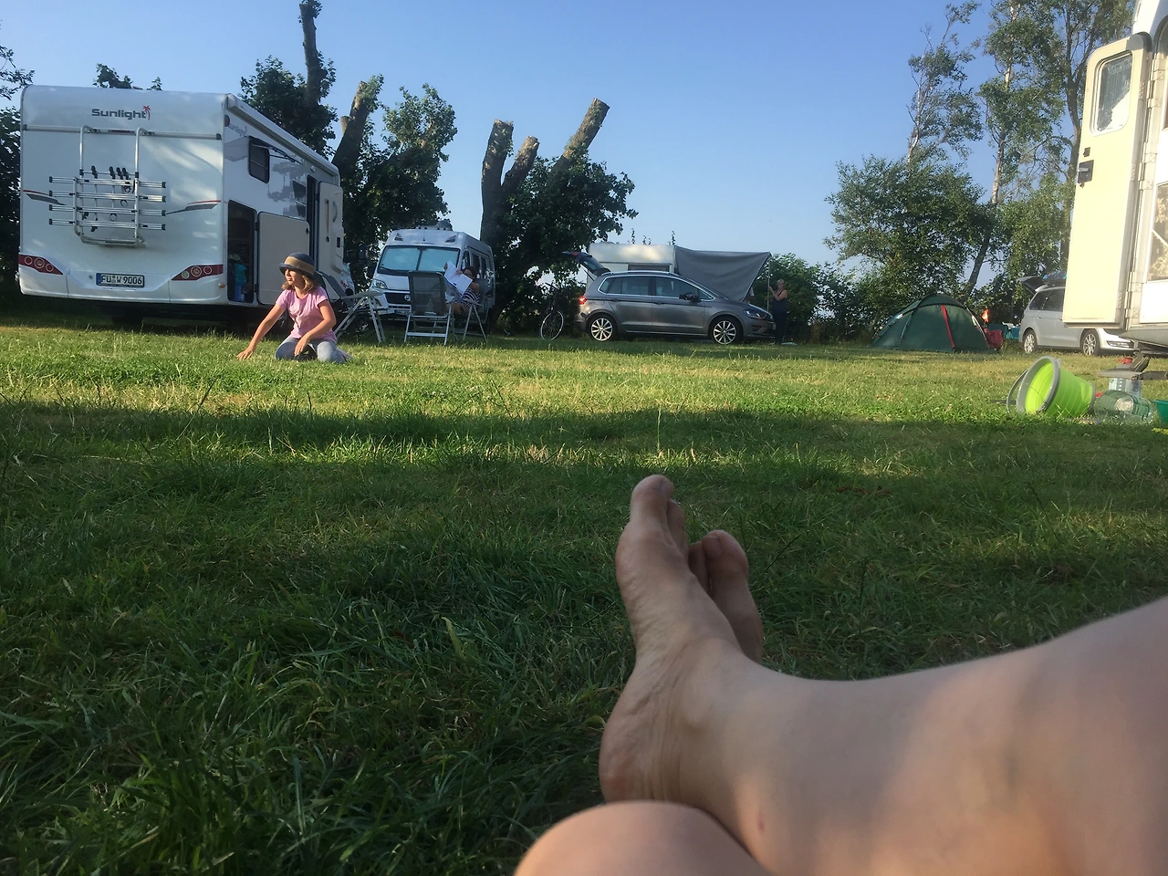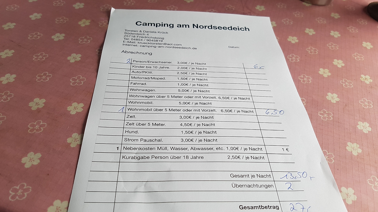 캠핑카 뒷문 유리창이 깨지는 사고를 잊어버릴 정도로 편안한 휴식을 취했던 독일 Leck의 공용 캠핑장을 떠나 독일 마지막 여행지로 향한다(2019년 7월 29일). 독일 와덴 해 갯벌 자연유산 구역 중 하나인 Friedrich Skoog 지역으로 가본다. 먼저 갯벌 해안가에 만들어져 있는 둔덕 아래에 있는 Nordseedeich 캠핑장에 아톰을 정차시킨다. 이곳을 선택한 이유는 갯벌 유산 구역을 보고 싶은 욕심과 아톰을 부산으로 보낼 항구인 함부르크에서 가깝기 때문이다.