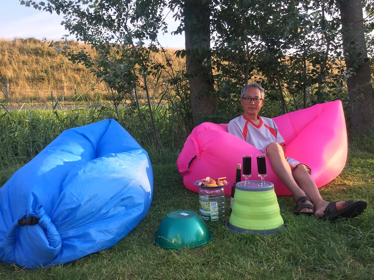 차 안에 남아 있는 와인과 과일을 모두 밖으로 데리고 나와 양동이와 물통을 뒤집어 테이블을 만들어 아내와 유럽 캠핑카 여행 마지막 저녁을 즐겨본다. 그리고 이 순간을 기록하기 위해 저녁노을을 즐겨야 한다. 캠핑장 앞에 있는 둔덕 위에 올라 가보니 마침 저녁 해가 서쪽으로 지려고 한다. 붉은 노을이 아름답다. 우리의 캠핑카 여행 마지막 밤을 축하해주는 듯하다. 우리 인생도 저렇게 아름답게 저물어 갔으면 좋겠다.