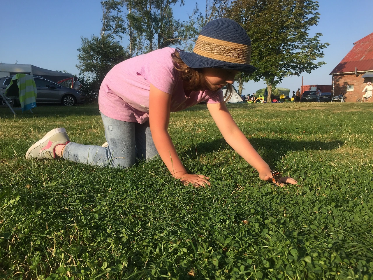 에어큐선을 꺼내어 시원한 바람을 즐겨본다. 여유로운 오후 햇살을 즐기고 있는데 아내가 어딘가에 시선을 뺏긴다. 영어가 짧은 소녀가 무언가 하고 놀고 있다. 그것은 나비. 그 나비는 소녀의 손, 등에 앉아서 소녀와 교감을 하는 듯하다.