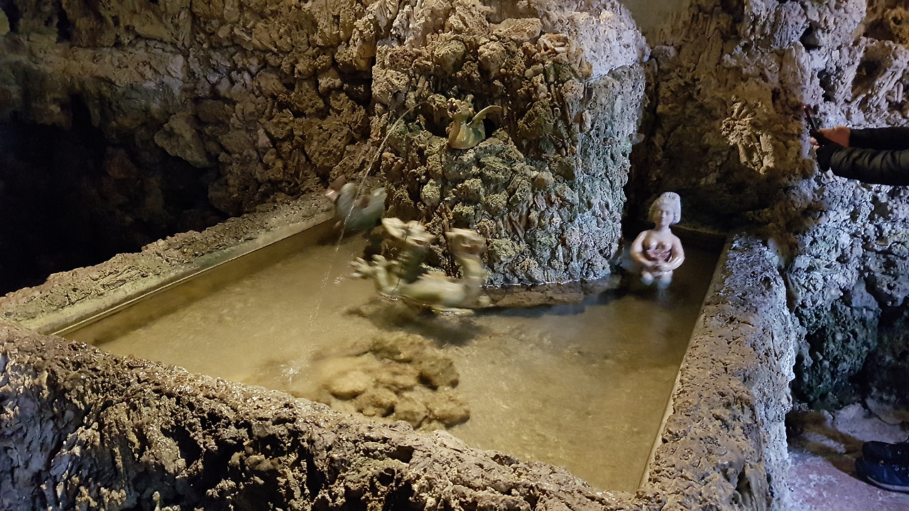 작지만 어딘가에 있을 분수들에서 갑자기 물이 뿜어져 나온다. 그 장소 하나하나가 스토리텔링의 산물이다. 이 궁전을 지은 마르쿠스 시티쿠스는 현대적으로 말하면 테마파크를 만들고 기획한 스토리텔링의 대가이다. 그 시대에 구현 가능한 기술을 모아서 재미 하나를 추구한 사람이니까 말이다. 이 세상에서 가장 재미있는 공간을 가지고 싶었고 지구 상의 유일한 공간의 주인이 되고 싶었던 권력욕의 주인공이었는지도 모른다.