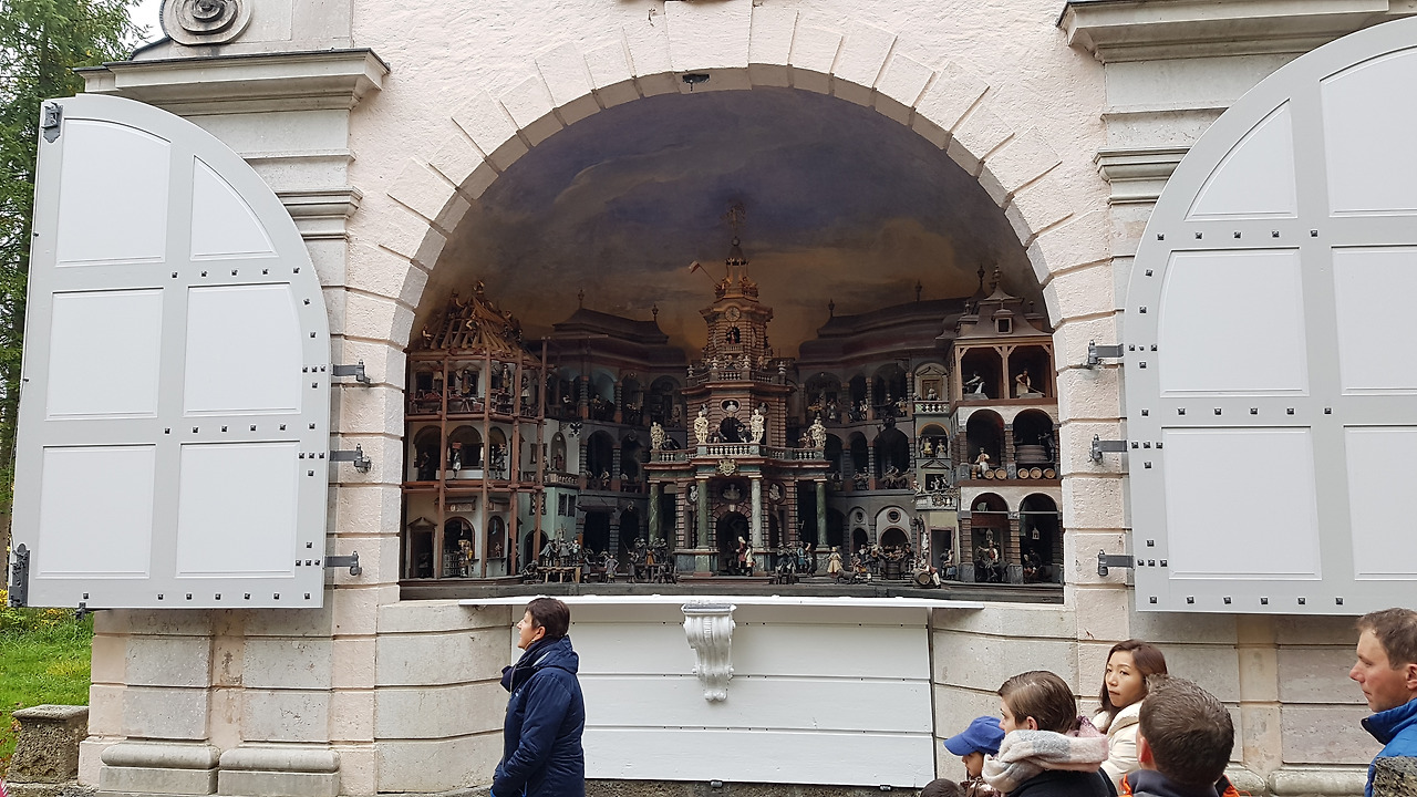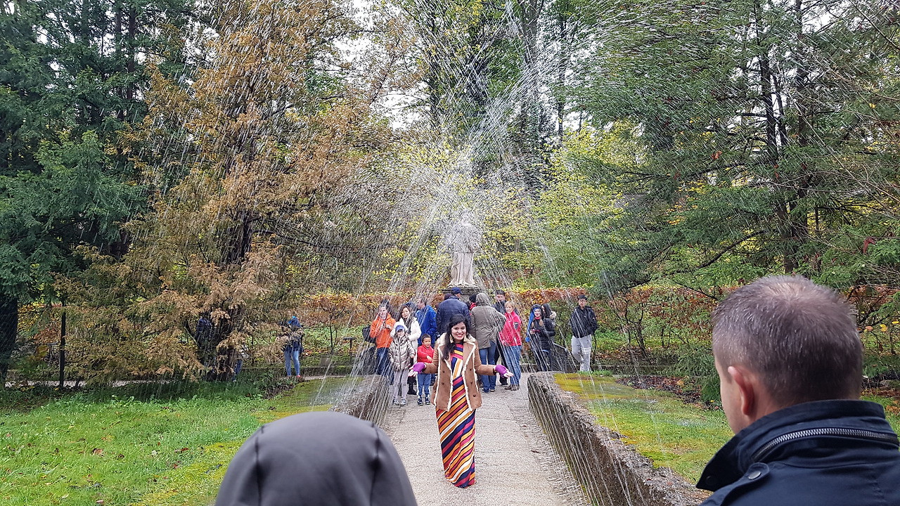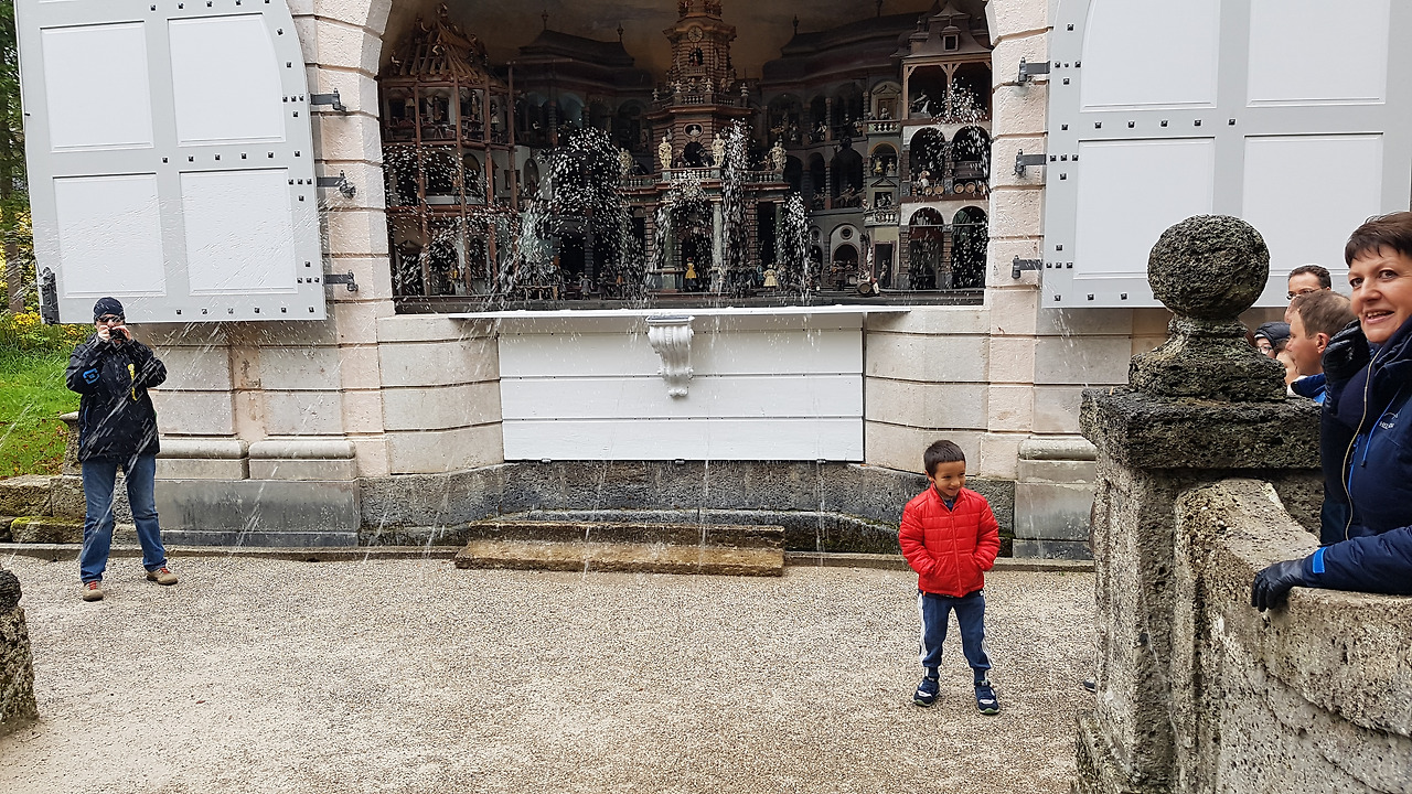 가이드는 영어와 독일어로 번갈아 가면서 설명한다. 그러나 영어나 독일어를 알아듣지 못해도 관계없다. 왜냐면 무조건 재미있는 시간이 지나가니까! 기발한 아이디어가 있는 분수가 여기저기에 있다. 수압으로 움직이는 커다란 인형극장에서는 감탄을 금치 못한다. 그리고 갑자기 어디에선가 물이 뿌려질지 모른다. 물터널에서는 아이는 물론 어른들도 동심의 세계에서 사진을 찍는다. 한 시간이 안되게 진행되는 가이드 투어이지만 모두 가이드에게 감사의 말을 전하고 아쉬운 이별을 한다. 정말로 재미가 있었으니까.