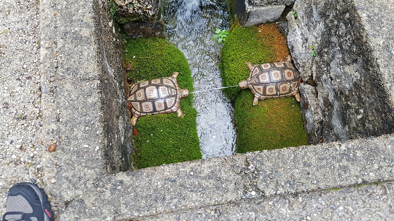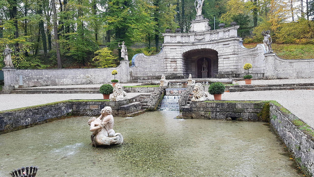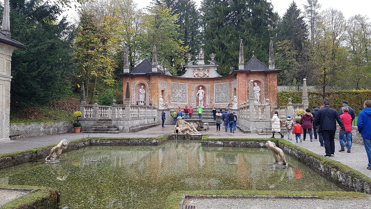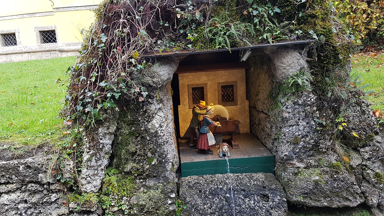 가이드는 영어와 독일어로 번갈아 가면서 설명한다. 그러나 영어나 독일어를 알아듣지 못해도 관계없다. 왜냐면 무조건 재미있는 시간이 지나가니까! 기발한 아이디어가 있는 분수가 여기저기에 있다. 수압으로 움직이는 커다란 인형극장에서는 감탄을 금치 못한다. 그리고 갑자기 어디에선가 물이 뿌려질지 모른다. 물터널에서는 아이는 물론 어른들도 동심의 세계에서 사진을 찍는다. 한 시간이 안되게 진행되는 가이드 투어이지만 모두 가이드에게 감사의 말을 전하고 아쉬운 이별을 한다. 정말로 재미가 있었으니까.