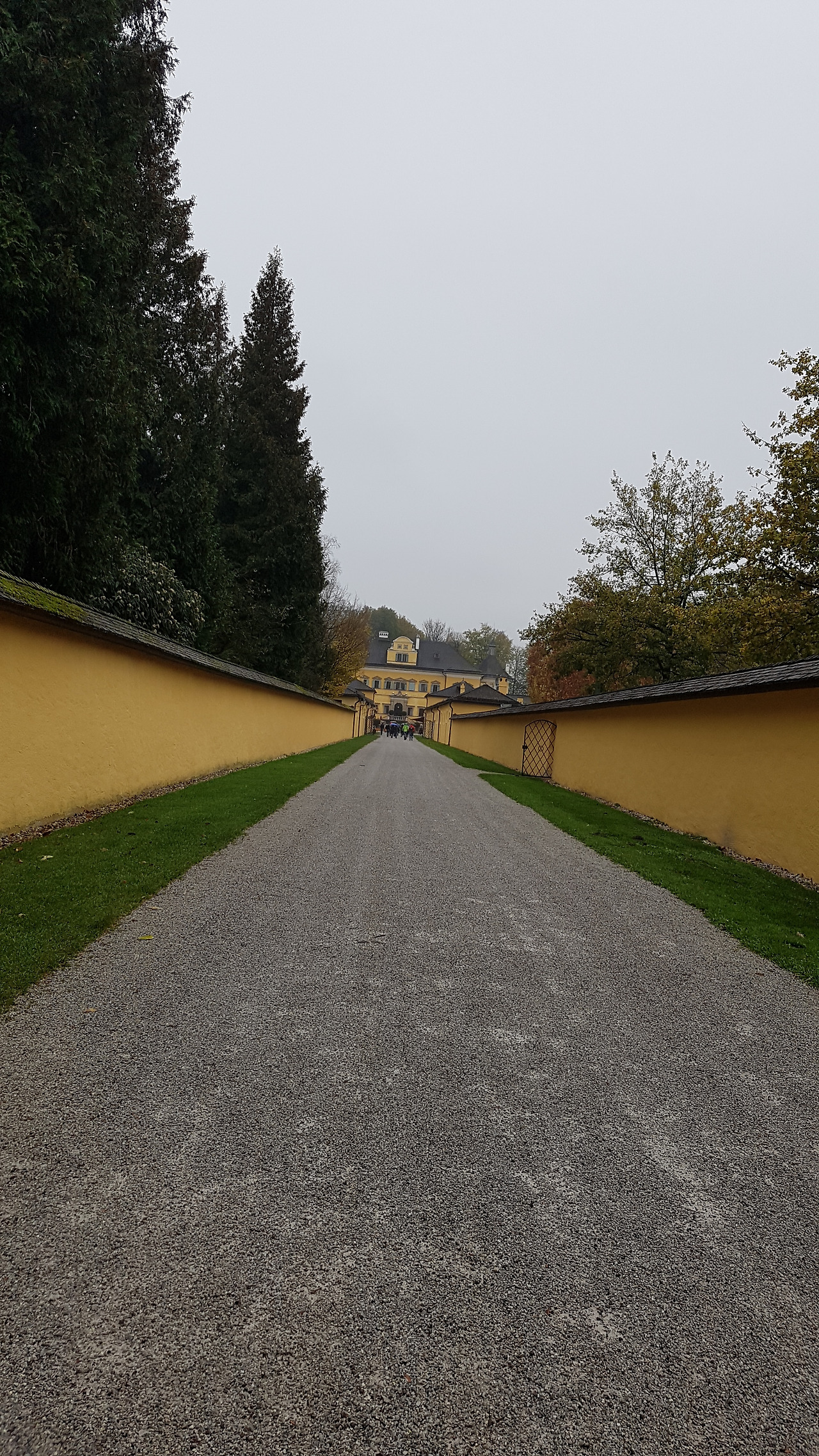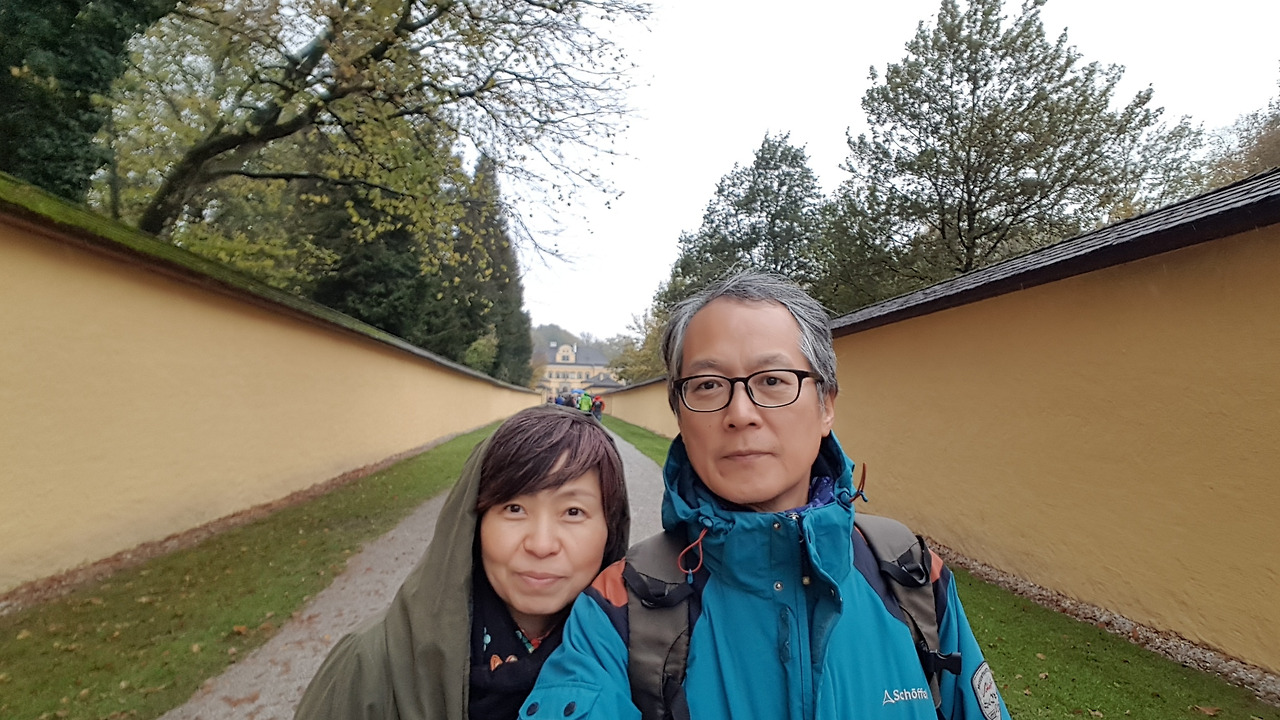 잘츠에서 꼭 가보고 싶었던 헬브룬 궁전을 찾아 떠나본다. 이 궁전은 잘츠 대주교였던 마르쿠스 시티쿠스가 여름 별궁으로 17세기 초반에 지은 것이다. 정박지에서 그리 멀지 않았기 때문에 우리 정박지에서 아침 산책 겸 걸어가 보기로 한다. 큰길을 벗어나 들어선 길에는 큰 가로수들이 도시를 벗어나고 있음을 보여주고 있고 궁전 입구의 권위를 드러내고 있다. 궁전에 들어서는 문에는 높은 벽이 양 옆을 둘러싸고 있는 긴 길이 있다.