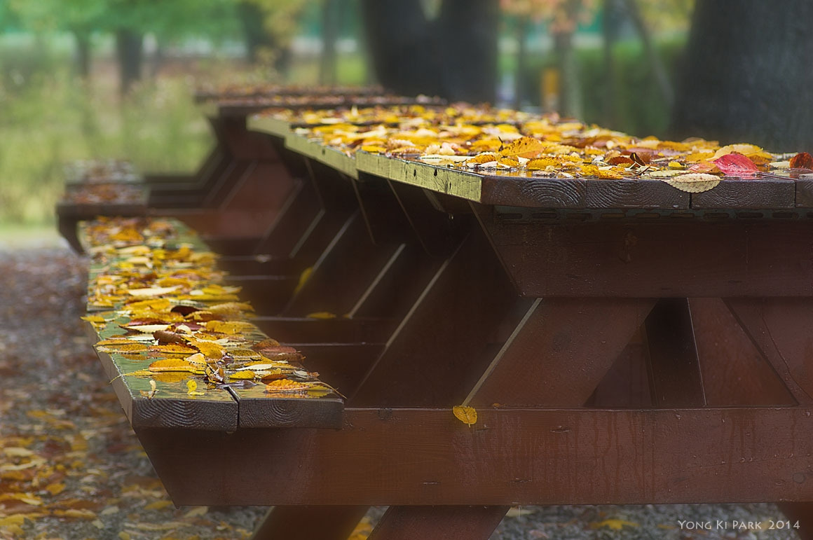 여름 동안 햇빛을 받아 양분을 만들기 위해 엽록소로 무장을 하고 있던 나뭇잎들이 이제 겨울을 나기 위해 잎을 떨구기 전 그 속에 원래 자신이 가지고 있던 다양한 색소로 최후의 치장을 함으로써 이렇게 아름다운 세상을 만들게 된다. 이러한 가을 잎을 보면서 사람들도 젊었을 때에는 여러 가지 이유로 자신의 본래 모습을 감추고 바쁘게 살았을 지라도, 나이가 들어 황혼기가 되면 이처럼 자신 속에 감추어져 있던 본연의 모습으로 아름답게 변해가면 좋겠다는 생각이 들었다. 더욱이 거기에 국화의 향기까지 더해서….