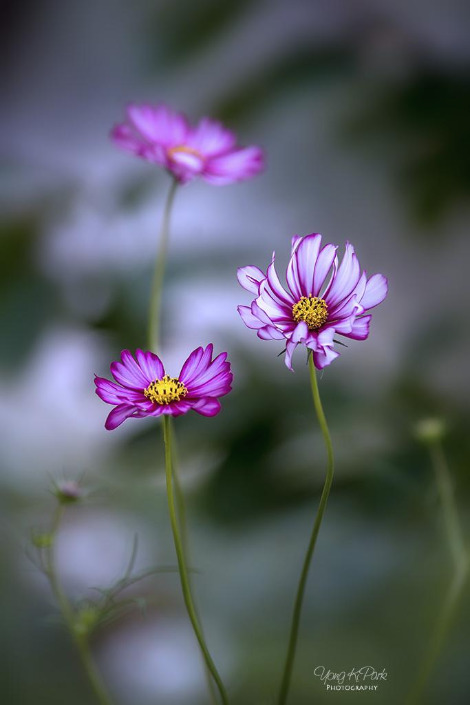분홍색, 흰색, 그리고 자줏빛 코스모스와는