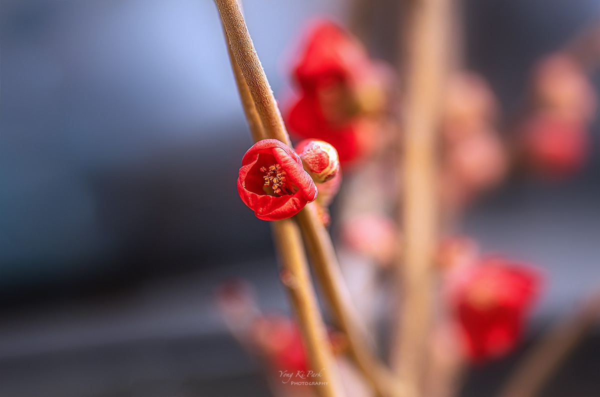 명자나무꽃 혹은 명자꽃으로 부르기도 하는 꽃입니다.
