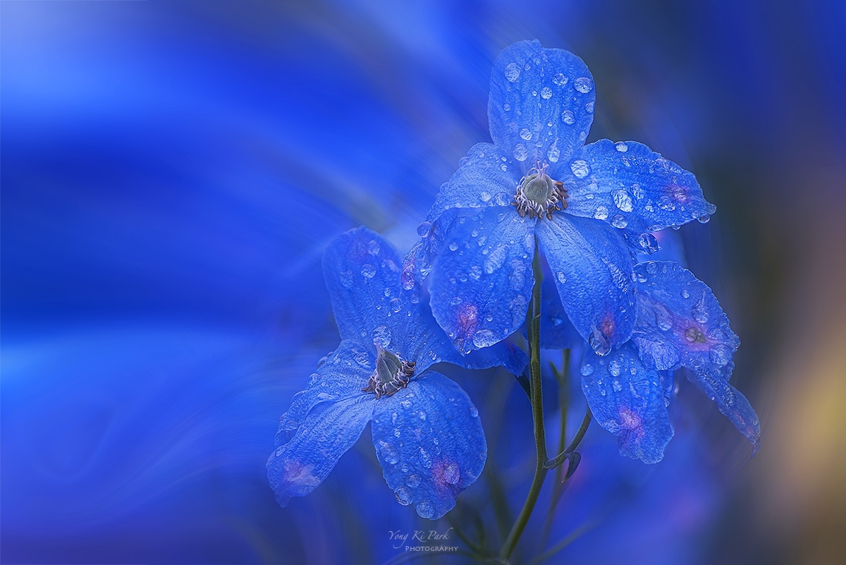 코발트블루의 깊은 바다 색으로 핀 델피니움이