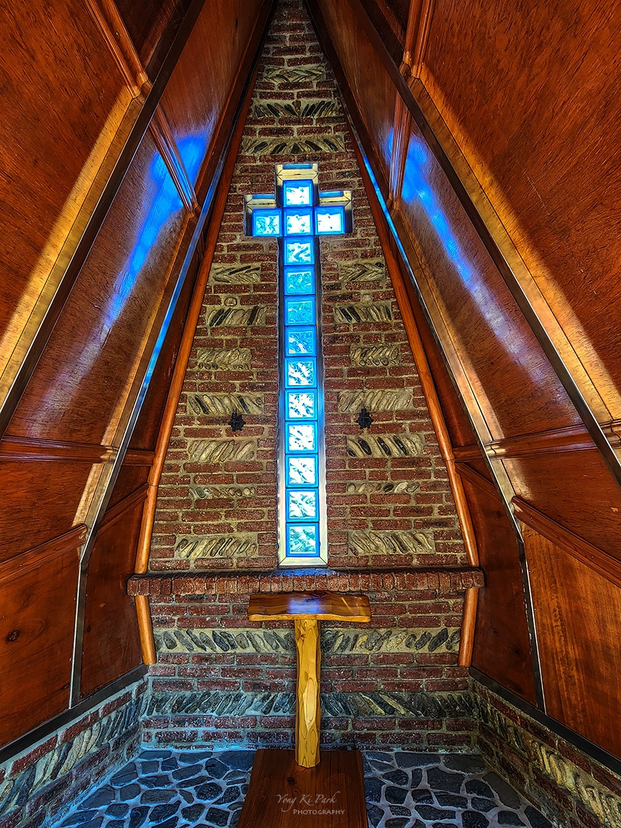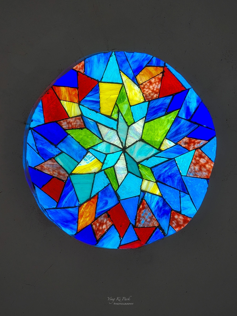 다섯 개의 작은 네모난 창으로 빛이 스며듭니다.