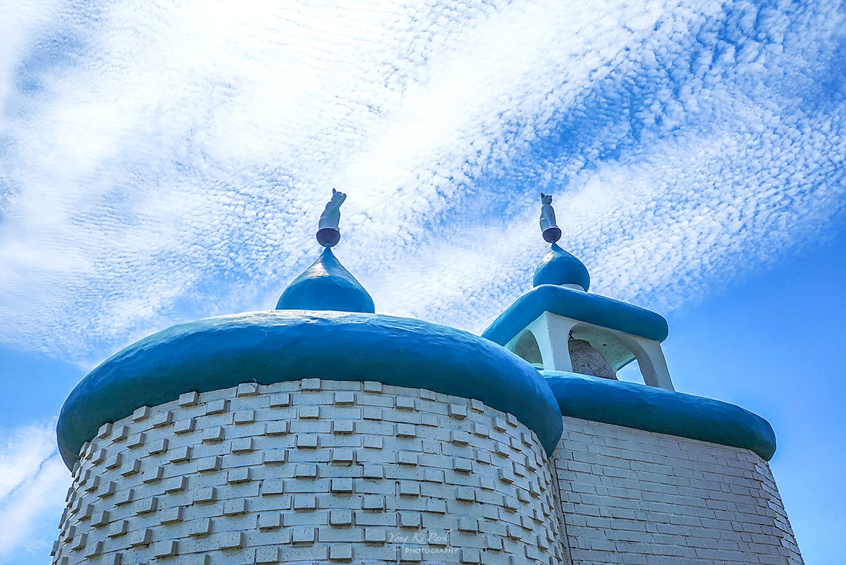 교회 앞과 지붕에는 고양이 조각이 있는데