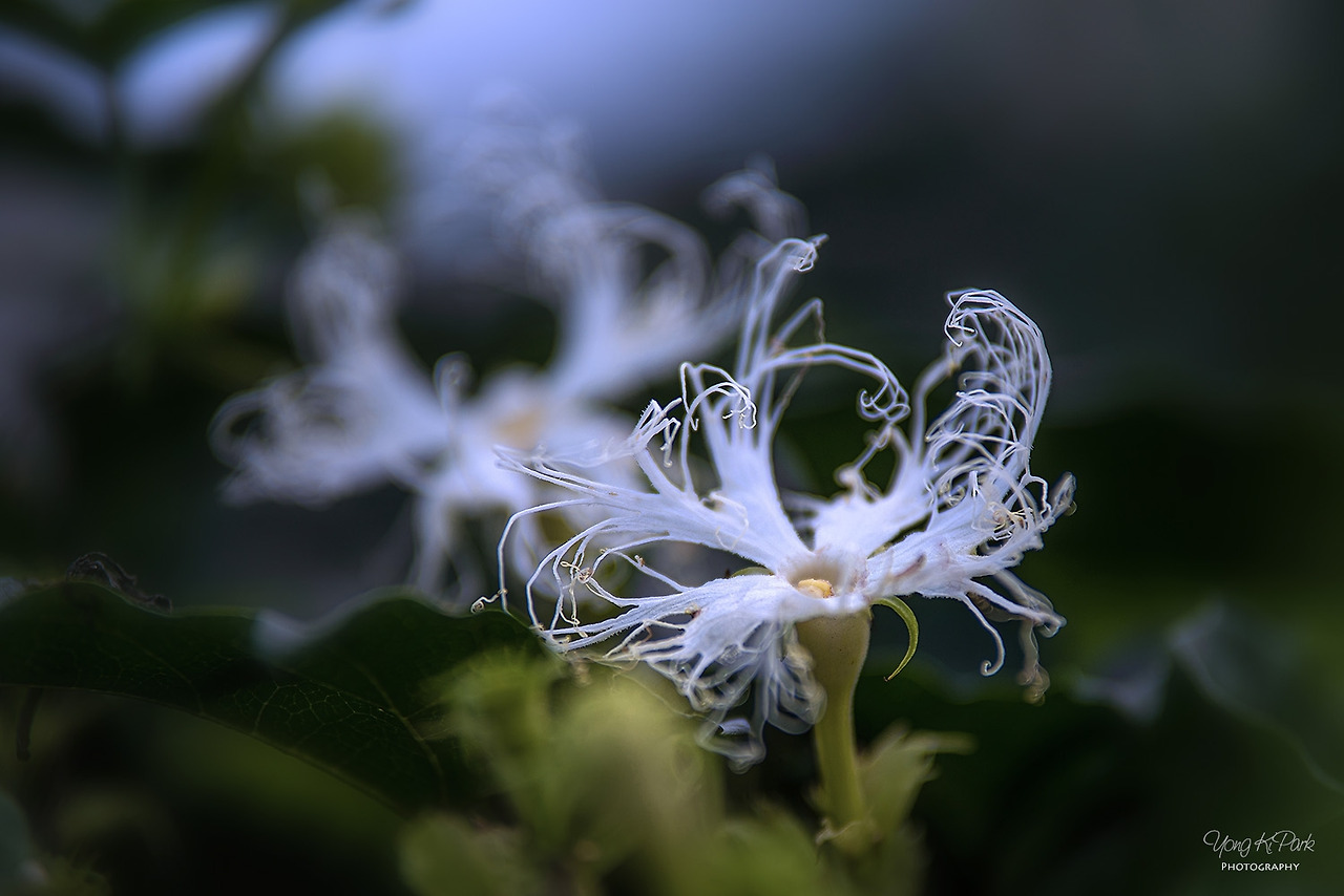 저 멀리 나무 사이에 피어있던 하얀 꽃