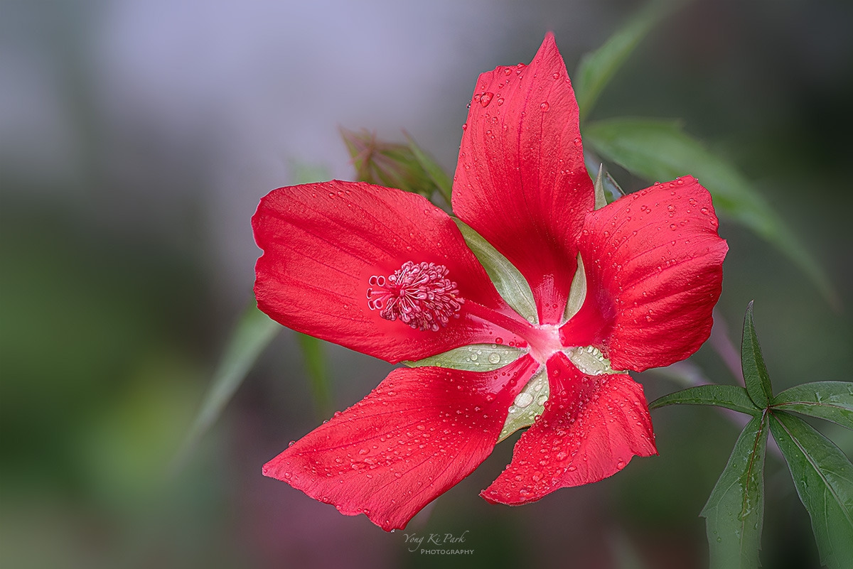 붉게 핀 물무궁화의 아름다움에 빠졌습니다.