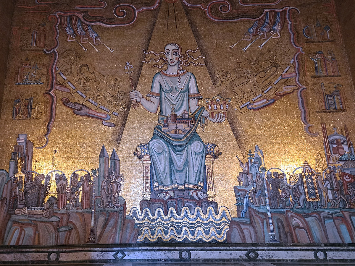 약 1,800만 개의 금박 유리 모자이크로 장식된 웅장한 홀.
