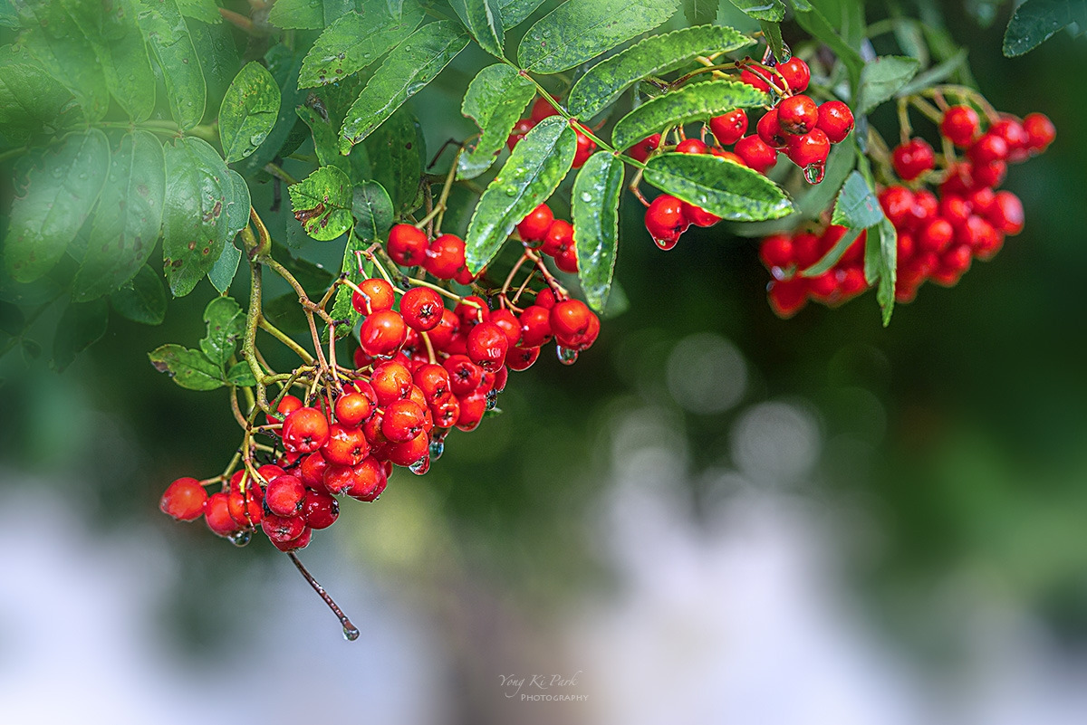 물방울이 맺힌 꽃들이 아름다웠습니다.