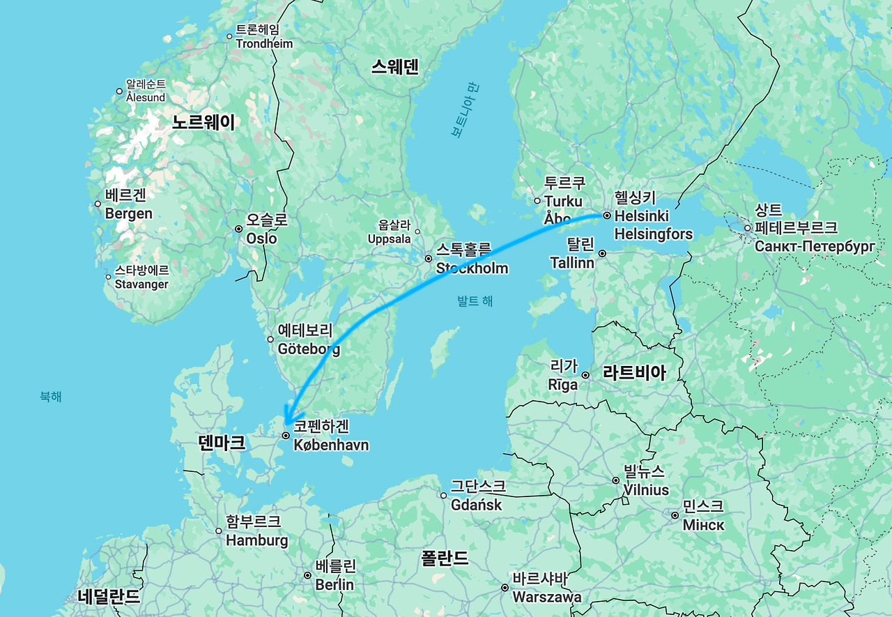 헬싱키에서 덴마크의 코펜하겐까지는