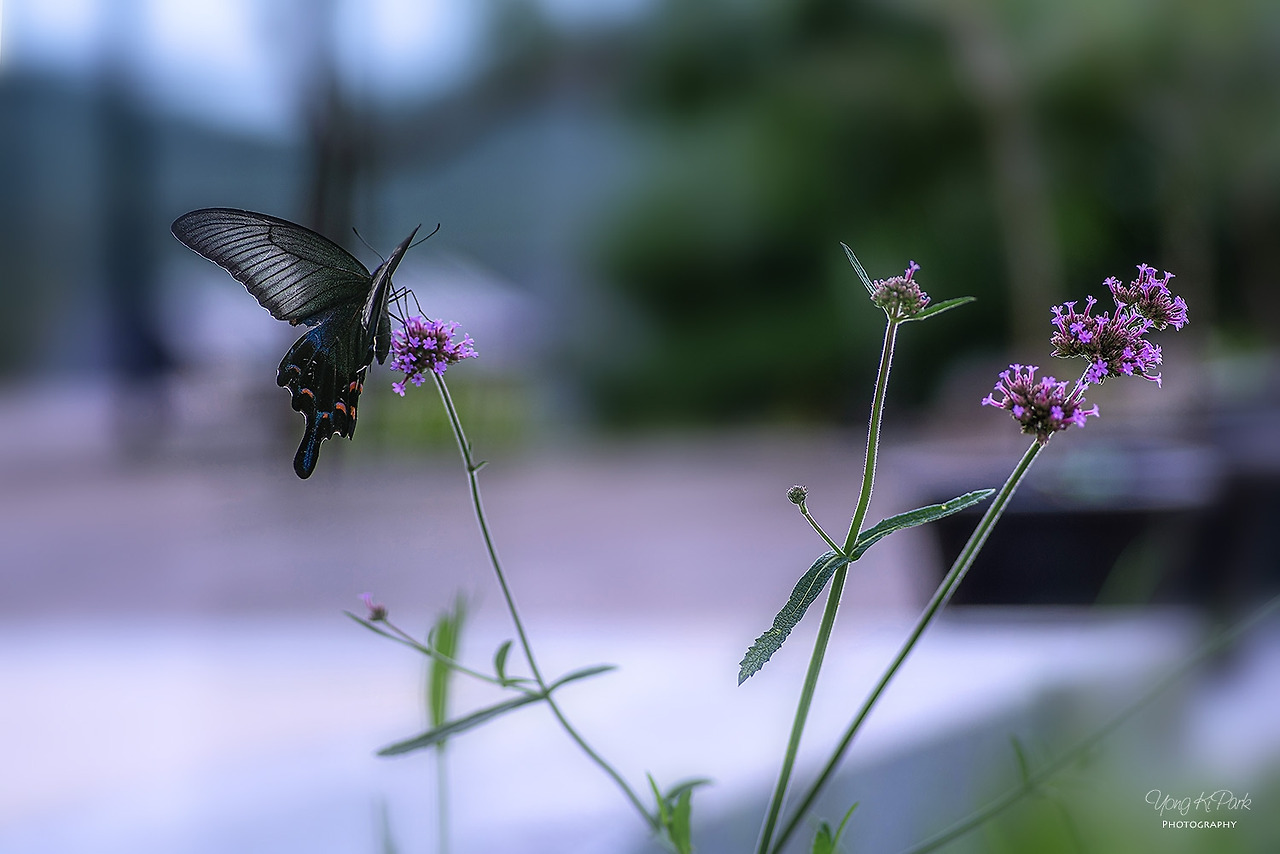 우아하게 제비나비 한 마리가 비행을 합니다.