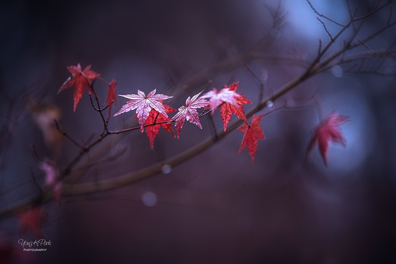 겨울비를 맞고 더욱 선명해진 단풍은