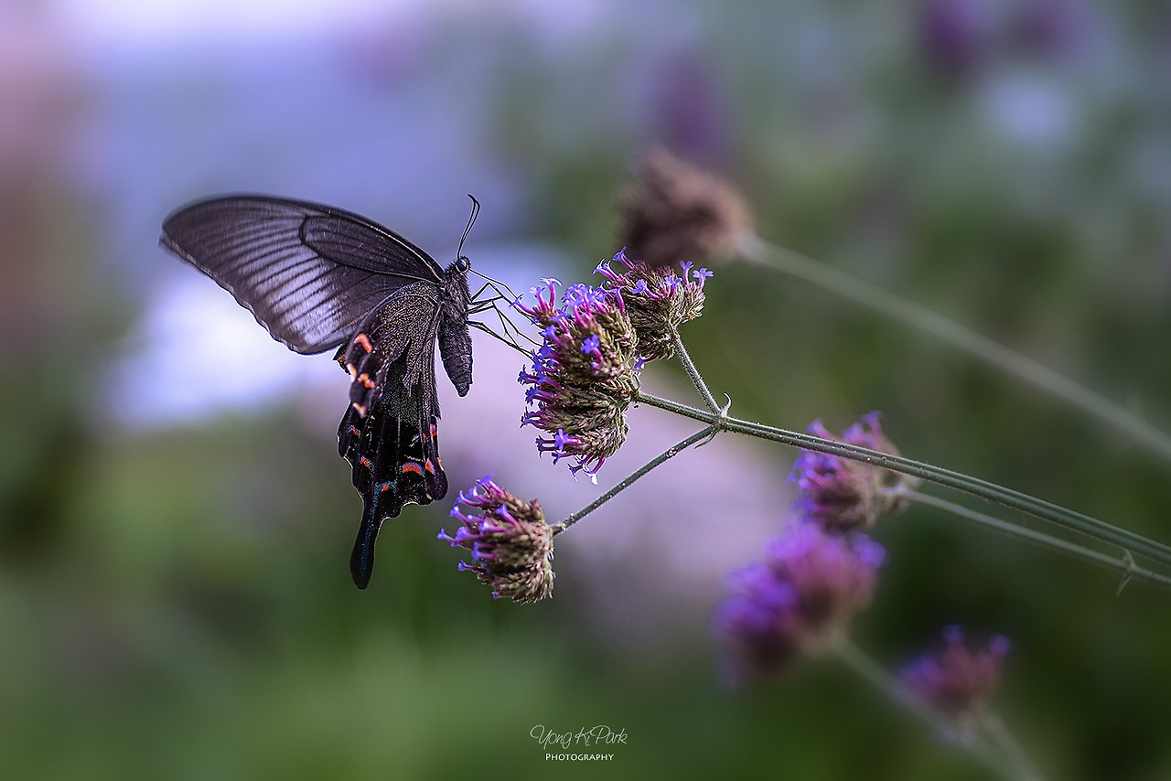 버들마편초 위에 사뿐히 앉아