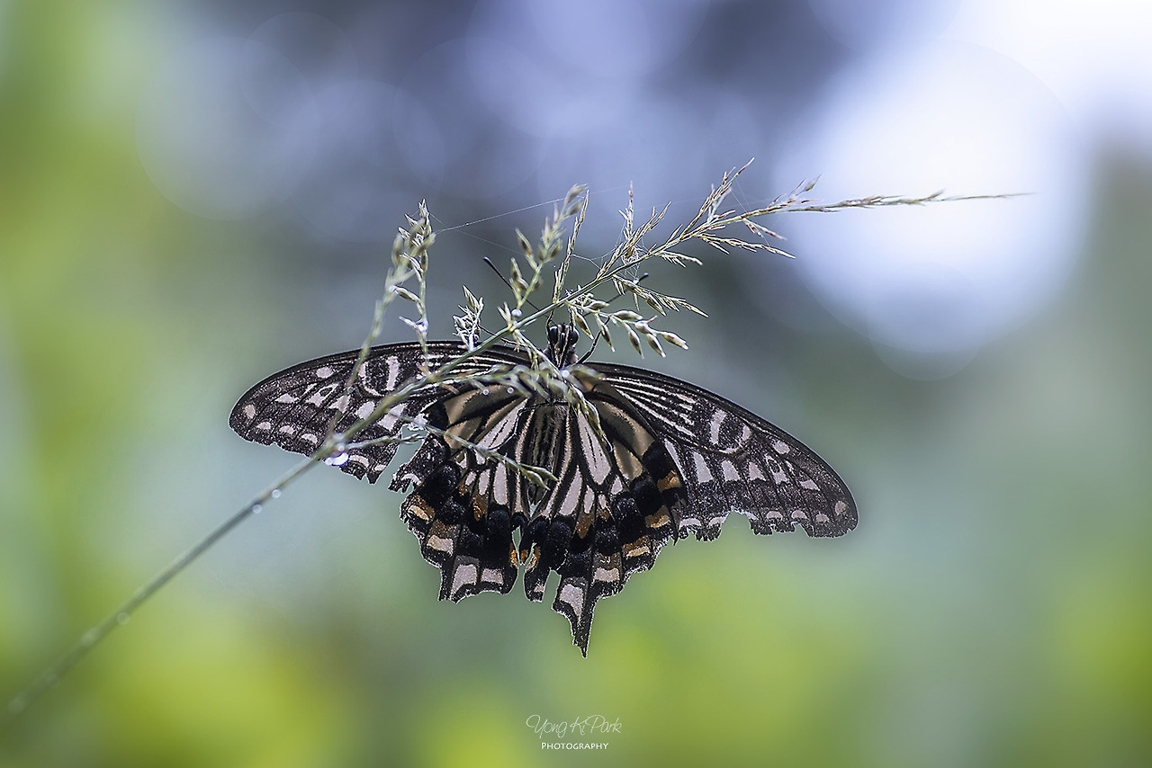 들풀 위에 앉아 쉬고 있는 나비 하나가