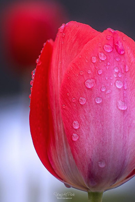 4월에 내린 봄비는 붉은 튤립 봉오리에