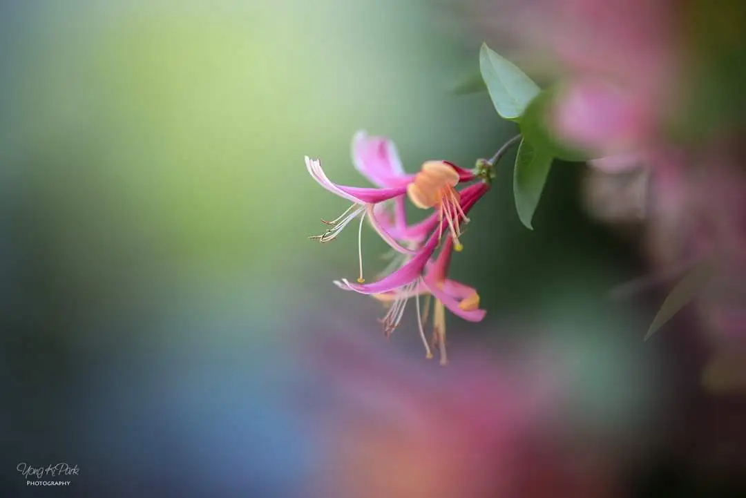 붉은 인동 꽃이 피어납니다.
