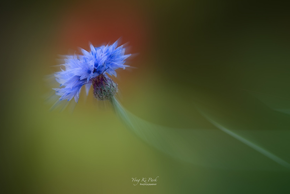 축대 아래 핀 수레국화 하나