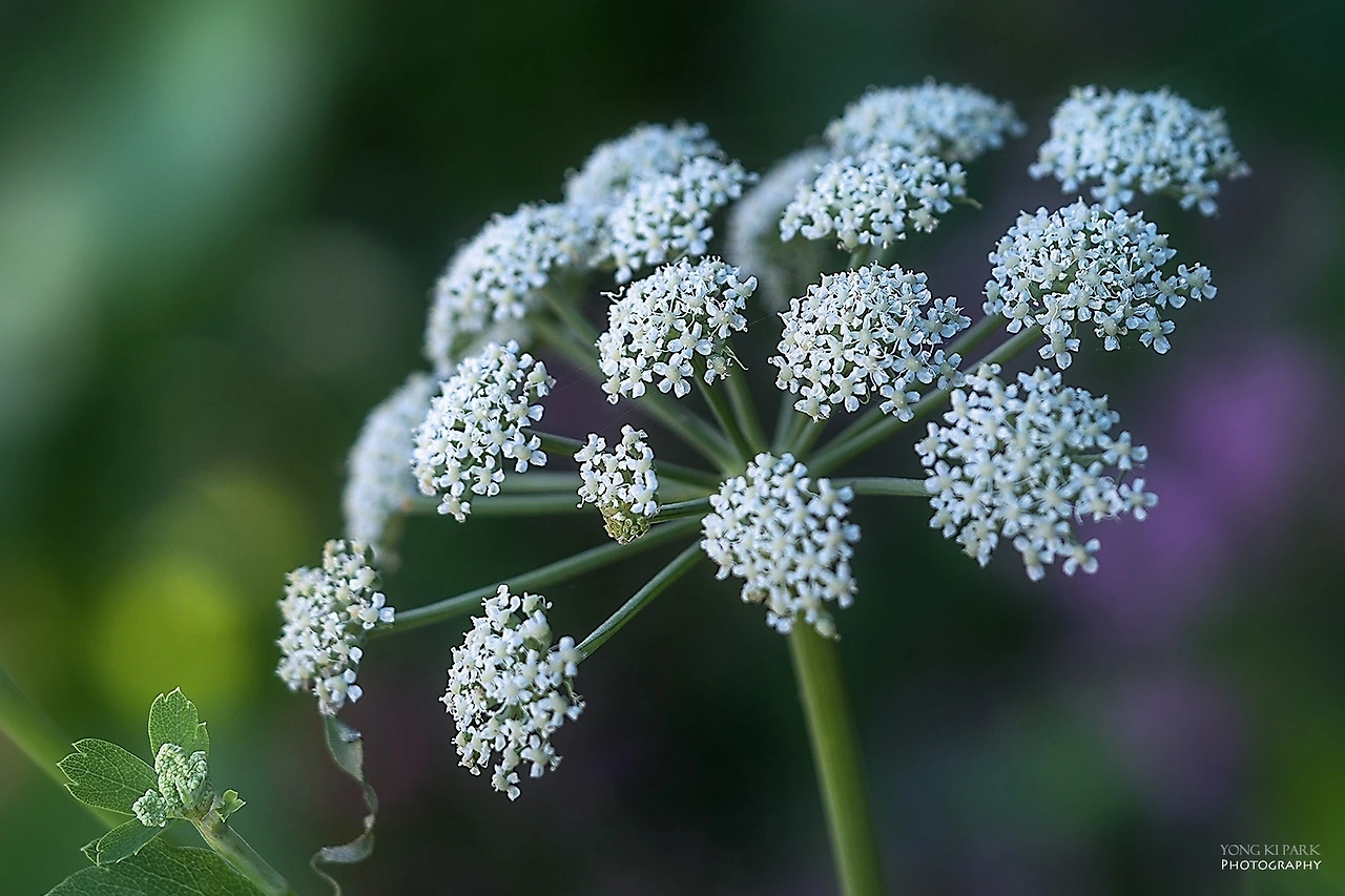 이른 봄이면 맛있게 먹을 수 있는 방풍나물이 섬의 주 재배 작물인데 수확이 끝나고 밭 가장자리에 남겨 둔 아이들이 자라 꽃을 피우고 있었다. 갯기름나물은 뿌리는 防風(방풍), 잎은 防風葉(방풍엽), 꽃은 防風花(방풍화)라 하며 약용한다고 한다. 작은 꽃들이 옹기종기 모여 동그랗게 마을을 이루고 그 마을들이 모여 하나의 섬을 이루는 꽃이다.