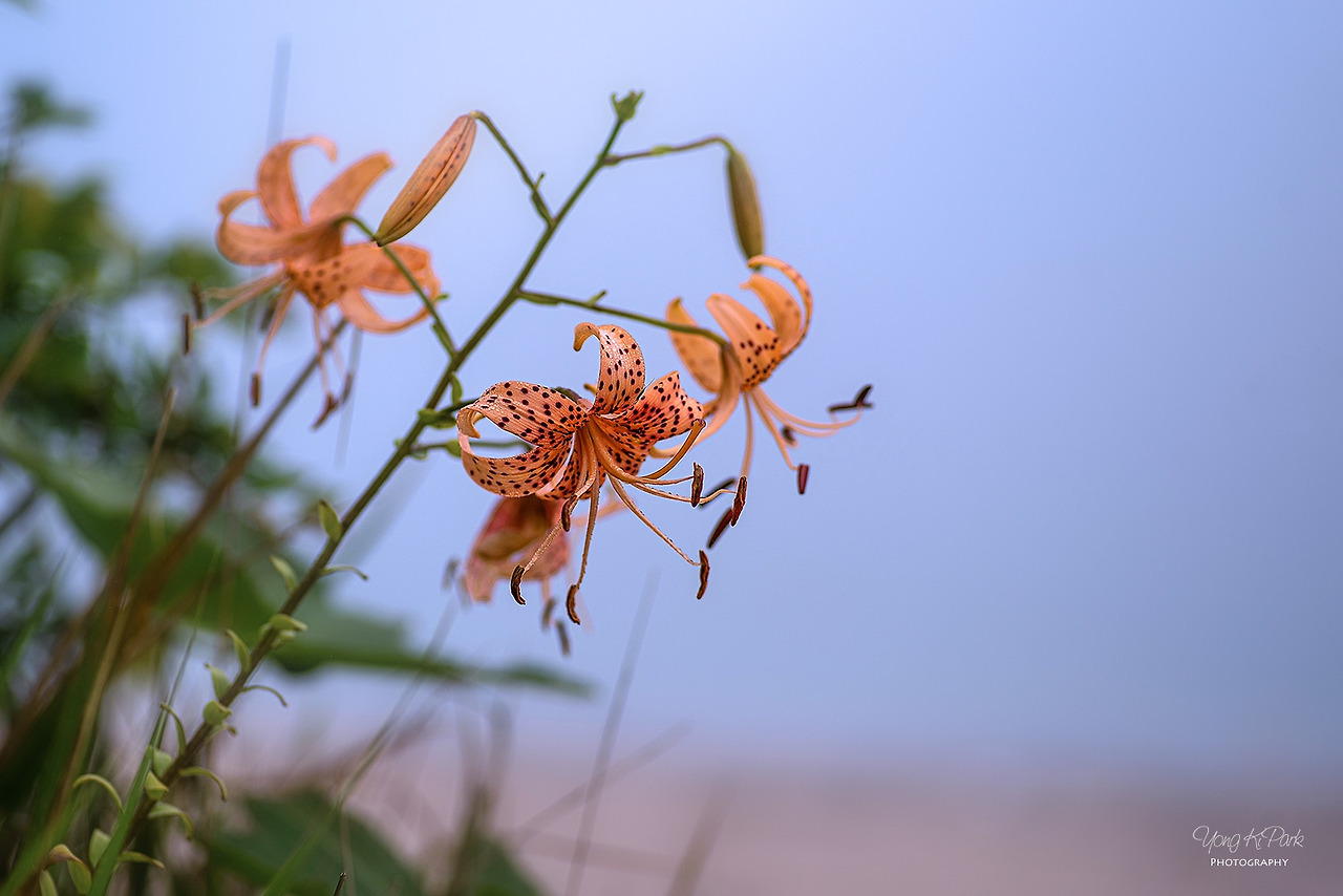 숙소 앞 소규모 신비의 바닷길 해변으로 내려가는 비탈에서바다를 향해 피어난 참나리꽃을 만났습니다.