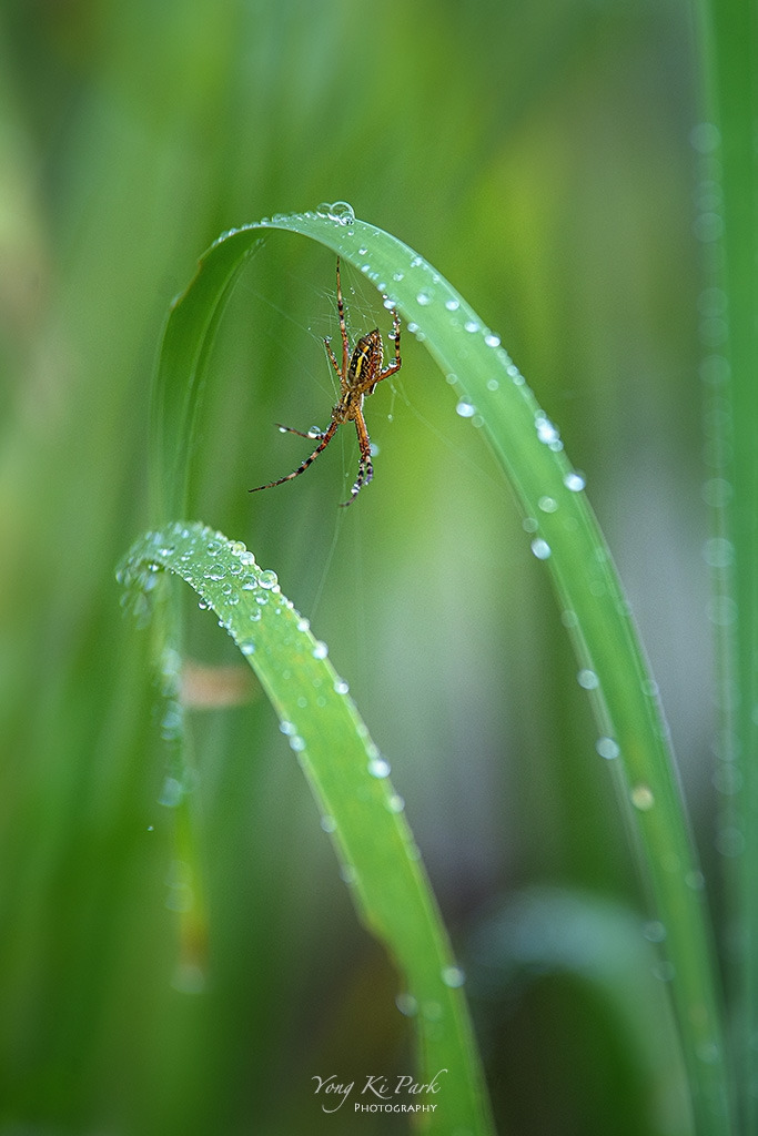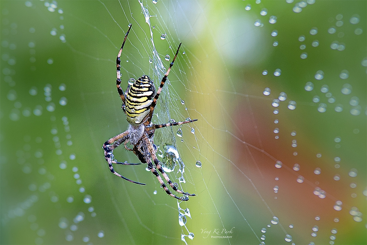 작은 연못가에는 풀잎 사이에커다란 거미 한 마리가거미줄을 치고 있었습니다.