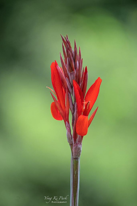 이제 막 피기 시작한 붉은 칸나꽃 한 송이를 만났습니다.