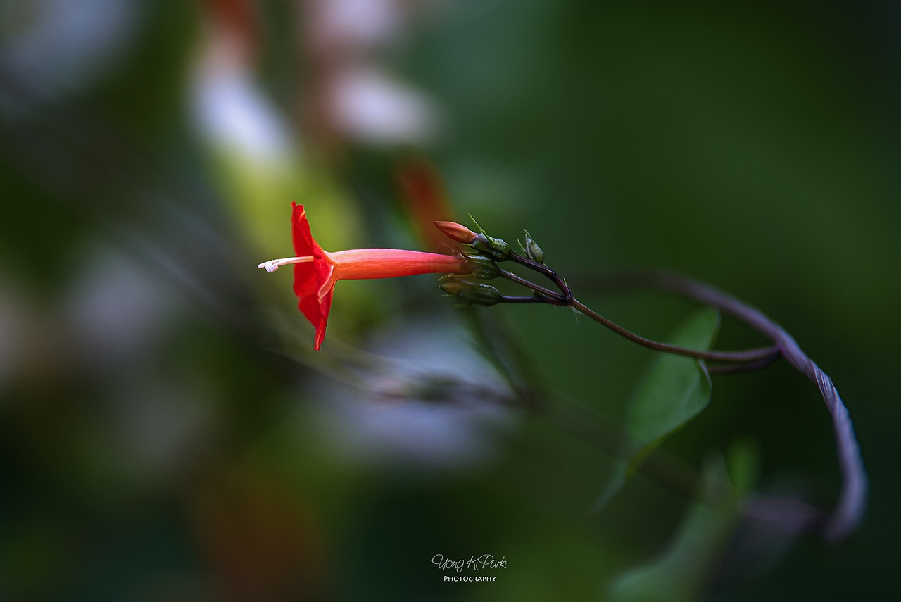 얼마나 뜨거웠으면 양 볼짝 똥그랗게 부풀어 저토록 새빨갛게 달아올랐을까 얼마나 따가웠으면 둥글넓적 커다란 이파리 낱낱이 저토록 빗살처럼 갈기갈기 잎몸 찢어졌을까 어찌 맑은 날만 있었으랴 흐린 하늘도 보았고 가뭄도 장마도 겪었겠지 비바람도 몰아쳤겠지 그렇게 여름강을 건넜어도 가을은 저만치에 있고 만신창이로 남은 몸뚱이 온몸 곳곳 열꽃이 핀다 왜 쉽게 살지 못했을까 가슴에 대못을 박는 배고픈 유혹 뿌리치며 뿌리치며 힘껏 공중으로 날려보내도 땅바닥으로 뚝뚝 떨어져 내리는 트럼펫 나팔 소리 걸어온 발자국마다 피눈물로 고인다 그랬다, 지금까지 그랬다 그렇게 피눈물을 밟고 다시 일어선 지금 이제부터라도 활짝 웃음꽃 피워야지 오늘도 날마다 거울 보며 웃는 연습 두 손으로 입꼬리 치켜올린다