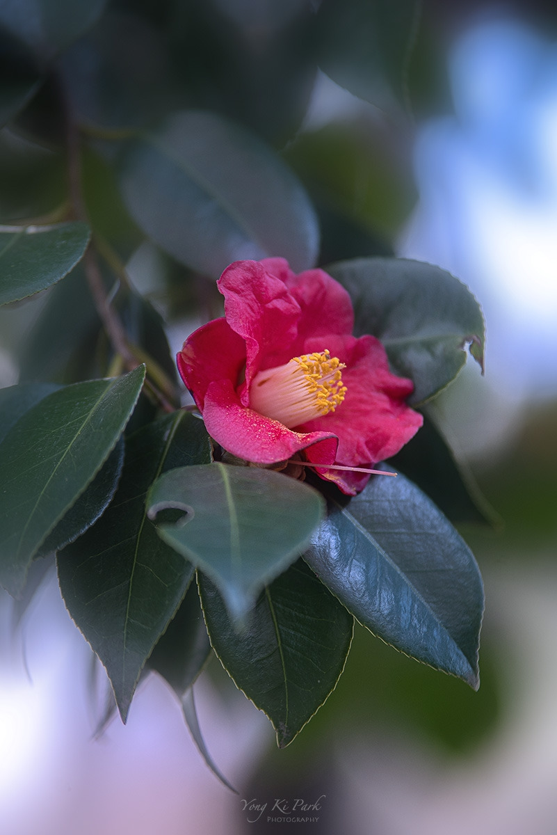 101동 화단에 피어있는 동백꽃을 만났습니다.