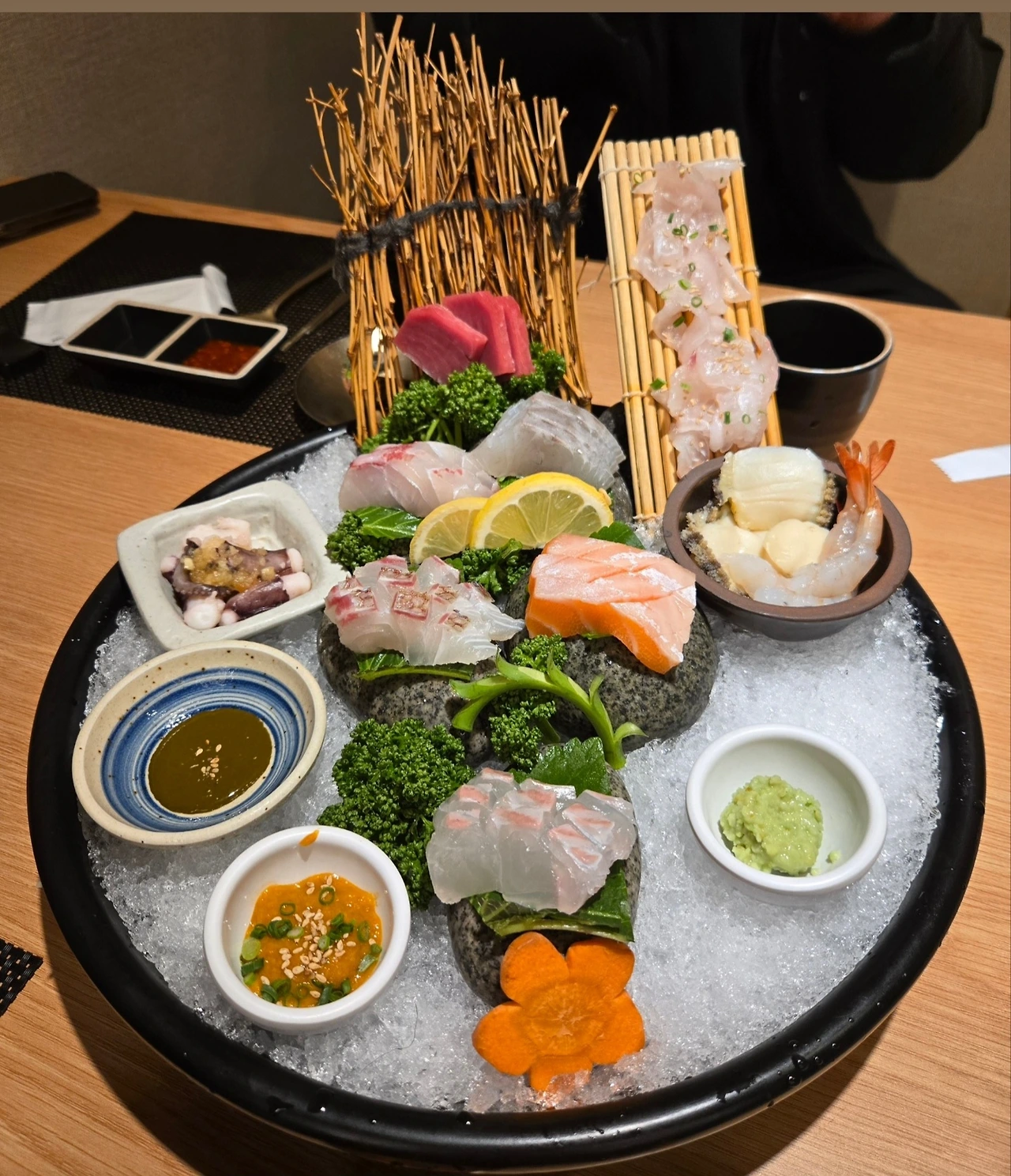 코스에 따라 회(膾)가 등장하자 식탁 위 분위기가 한층 화사해졌다. 투명하게 빛나는 생선살이 정갈하게 놓여 있었다. 한 점을 집어 간장에 살짝 찍어 입에 넣자, 부드러운 식감이 혀끝에서 사르르 녹았다.