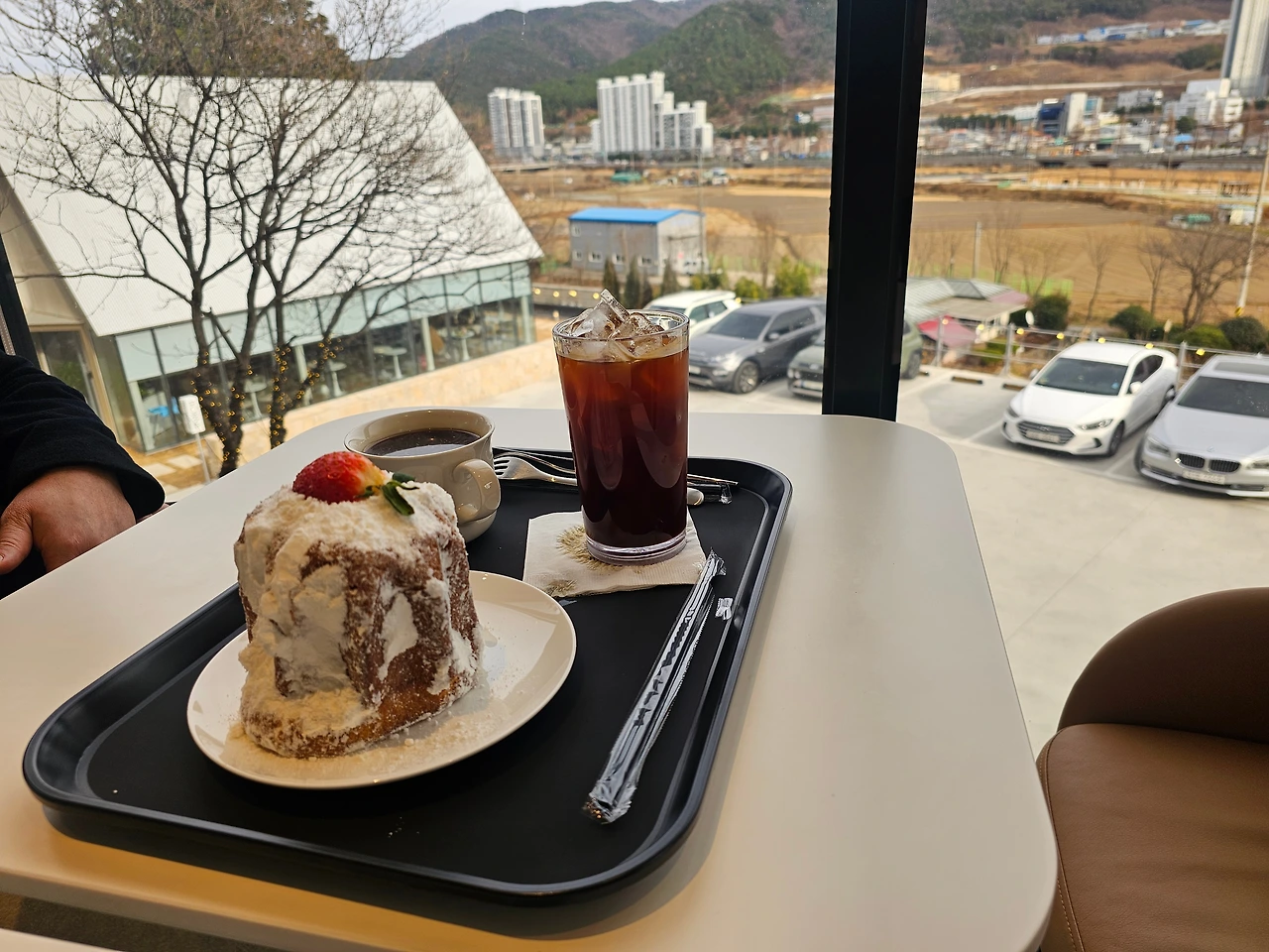 우리는 창가에 자리를 잡았다. 천성산의 능선이 한눈에 들어오는 자리였다. 봉수대는 여전히 묵묵히 서 있었고, 산불감시 초소는 겨울 하늘 아래에서 자신의 역할을 다하고 있는 듯 보였다. 커피 향이 은은하게 퍼졌고, 잔을 손에 쥐자 따뜻함이 손끝에서부터 천천히 마음까지 스며들었다. 그 온기는 단순히 체온을 올리는 것이 아니라, 하루의 속도를 늦추어 주는 역할을 했다.