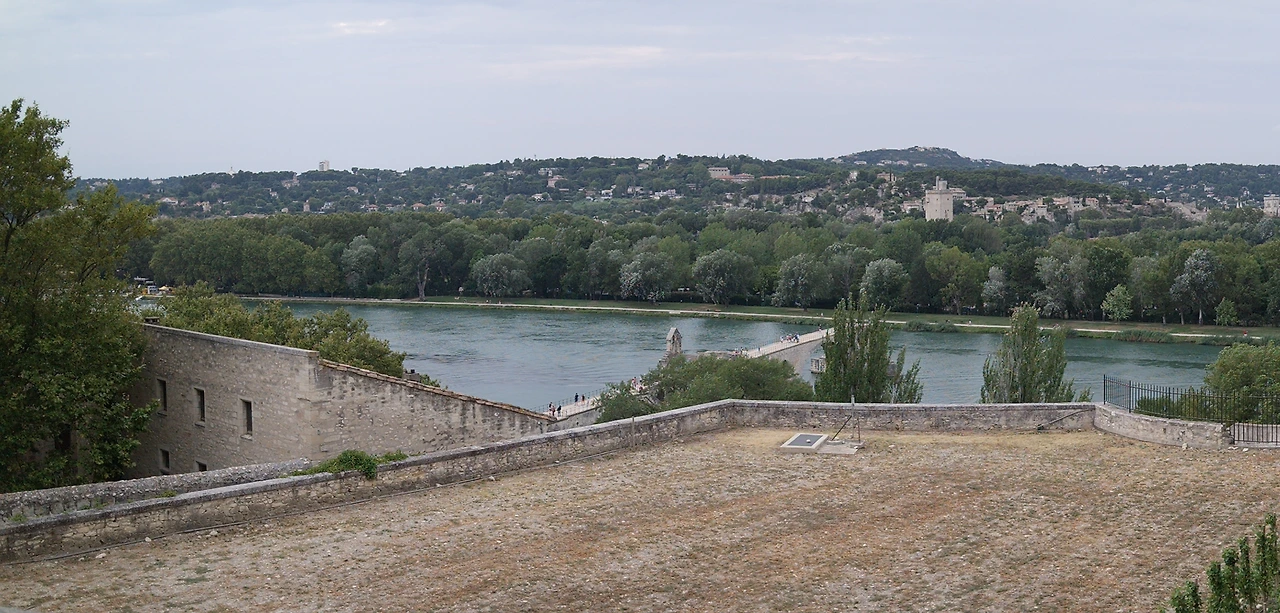 그렇게 교황청에서 딱 한 방만을 보고 왼쪽으로 돌아나왔다. 공원 같은 것이 있는 것 같아 올라왔는데, 오르막을 다 올라가니 바로 아비뇽을 둘러싼 론 강이 보인다.