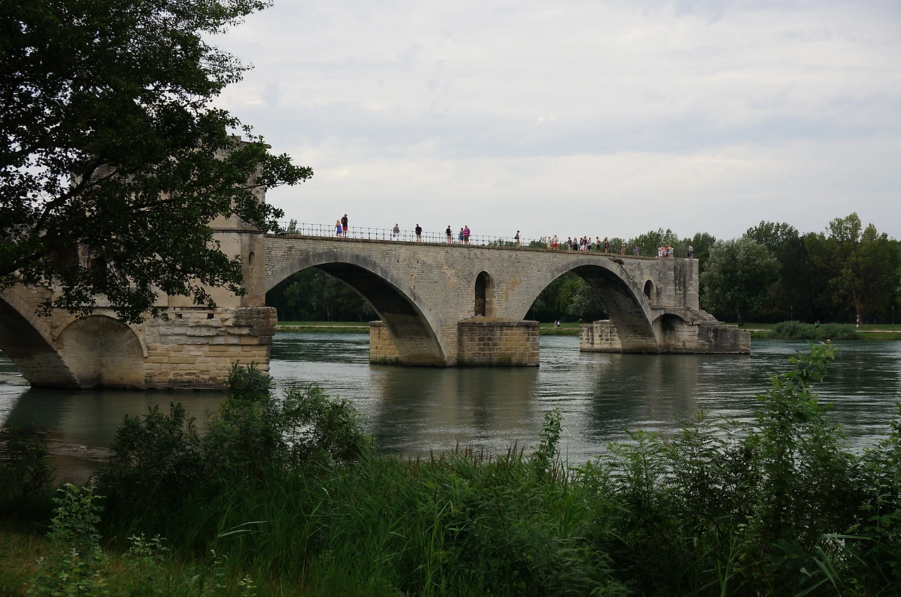 아비뇽 다리의 본래 명칭은 Pont Saint-Bénézet이다. 그러나 많은 경우 아비뇽 다리Pont d'Avignon이라는 이름으로 불린다. 그만큼 아비뇽의 다리가 아비뇽을 대표하는 건축물이라는 의미가 반영되어 있는 셈이다. 아비뇽 다리가 맨 처음 지어진 것은 1177년에서 1185 사이이다. 그러나 1226년에 다리가 크게 파괴되자 1234년에 다시 재건되었다. 재건되기 전에는 현재와 다르게 교각 부분만 암석이었고 나머지는 나무로 된 다리였다고 한다. 이때 재건을 하면서 지금과 같이 전체가 돌로 이루어진 다리가 되었다.