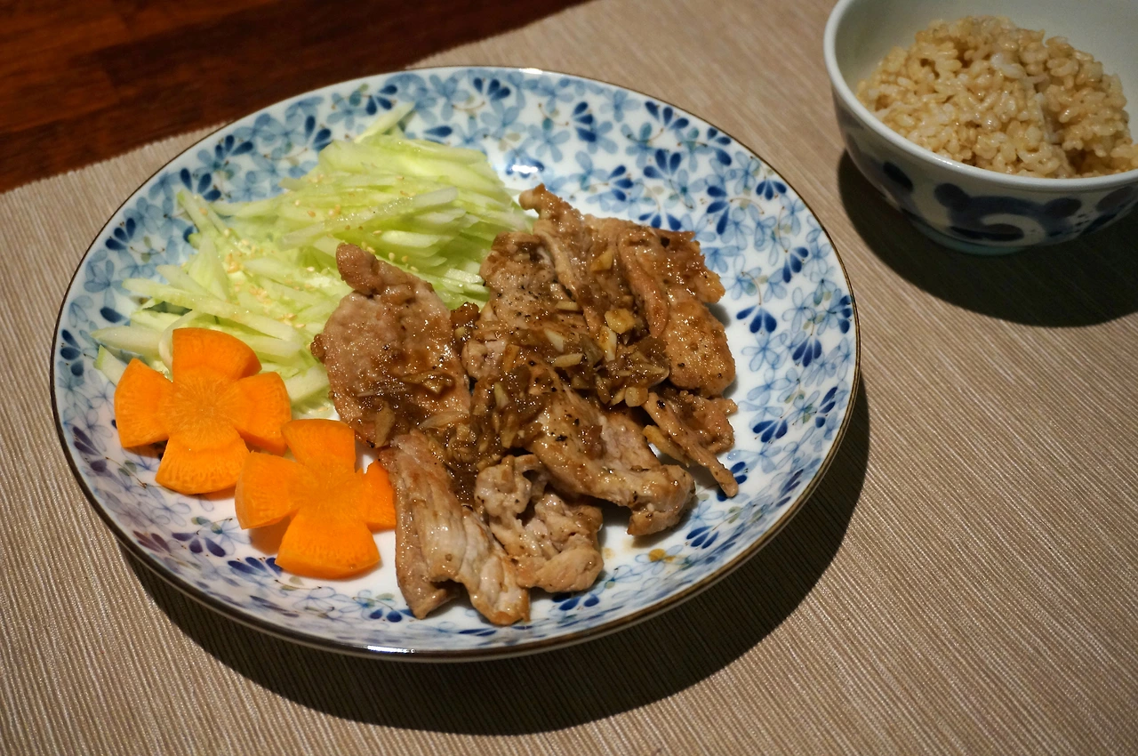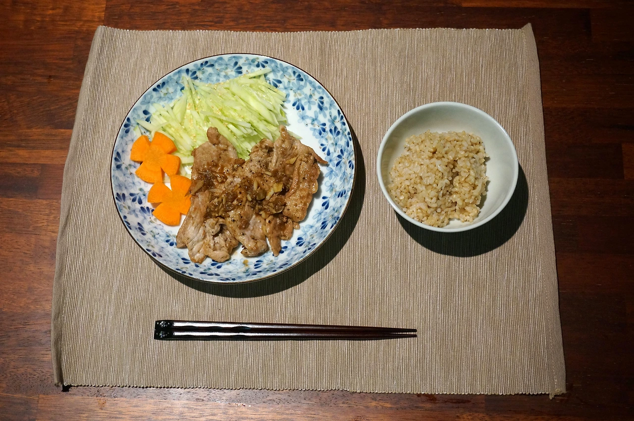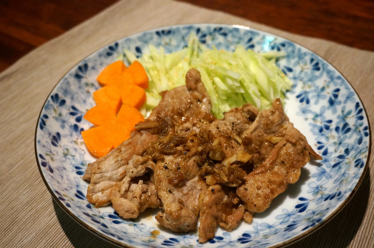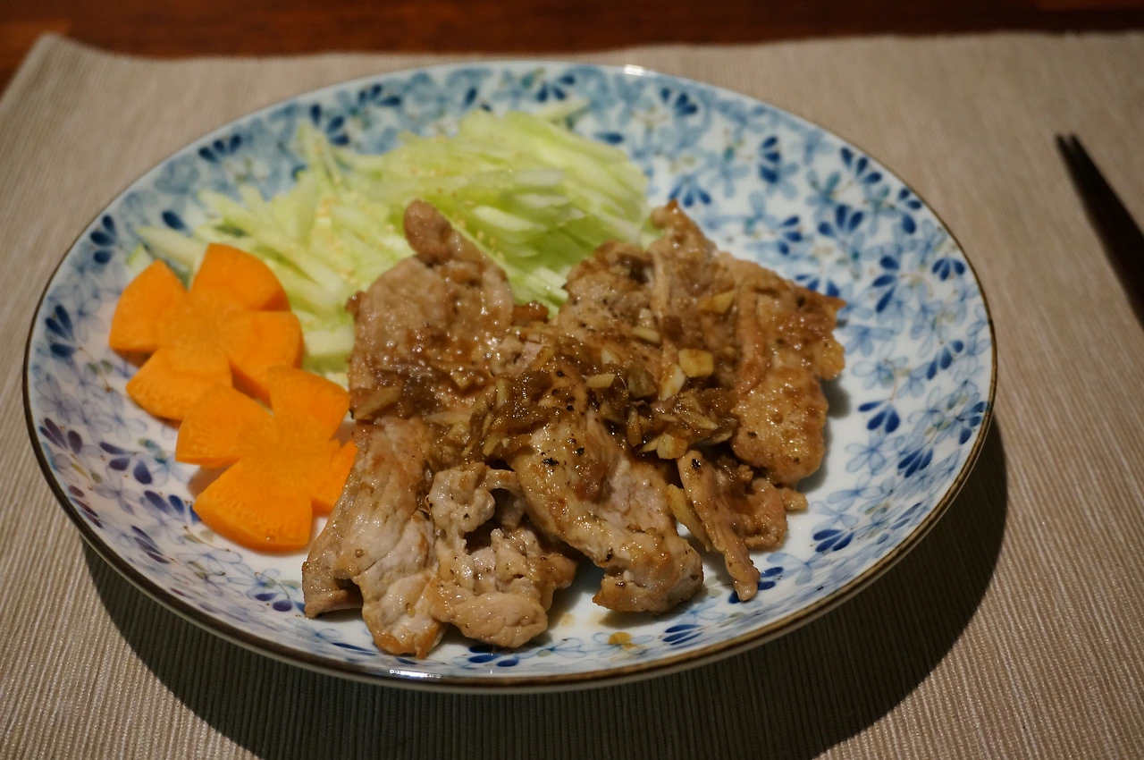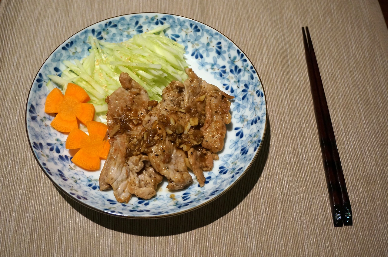 양배추가 없어서 채 썬 오이와 당근을 곁들였는데 쇼가야키와 꽤나 잘 어울렸다. 식당에서 만드는 경우 양을 늘리기 위해 팬에 구운 양파를 곁들인다는데, 생강소스가 어우러진 양파를 함께 먹는 것도 좋을 듯하다.